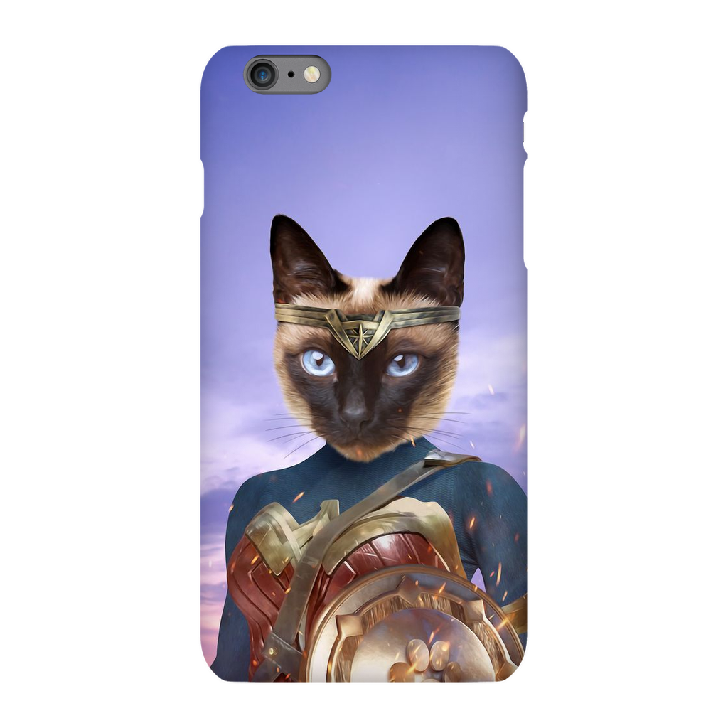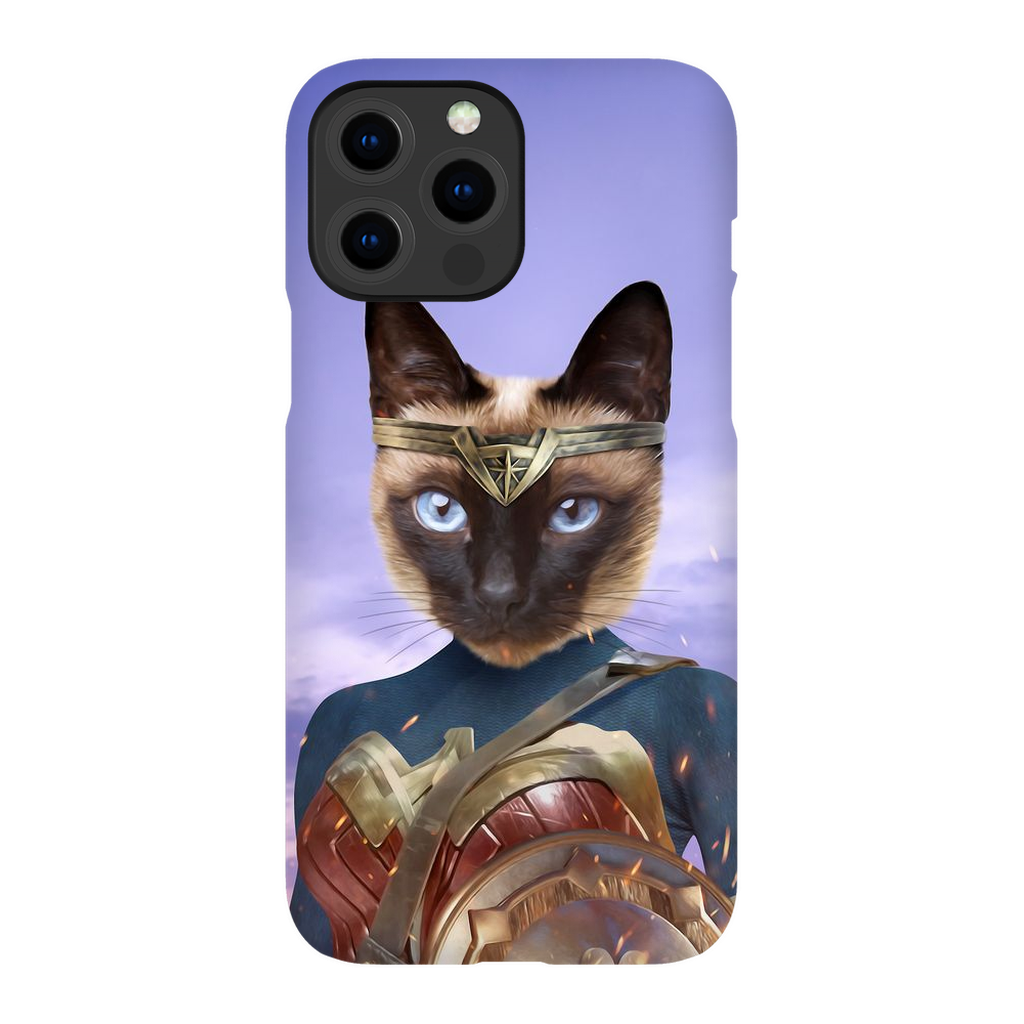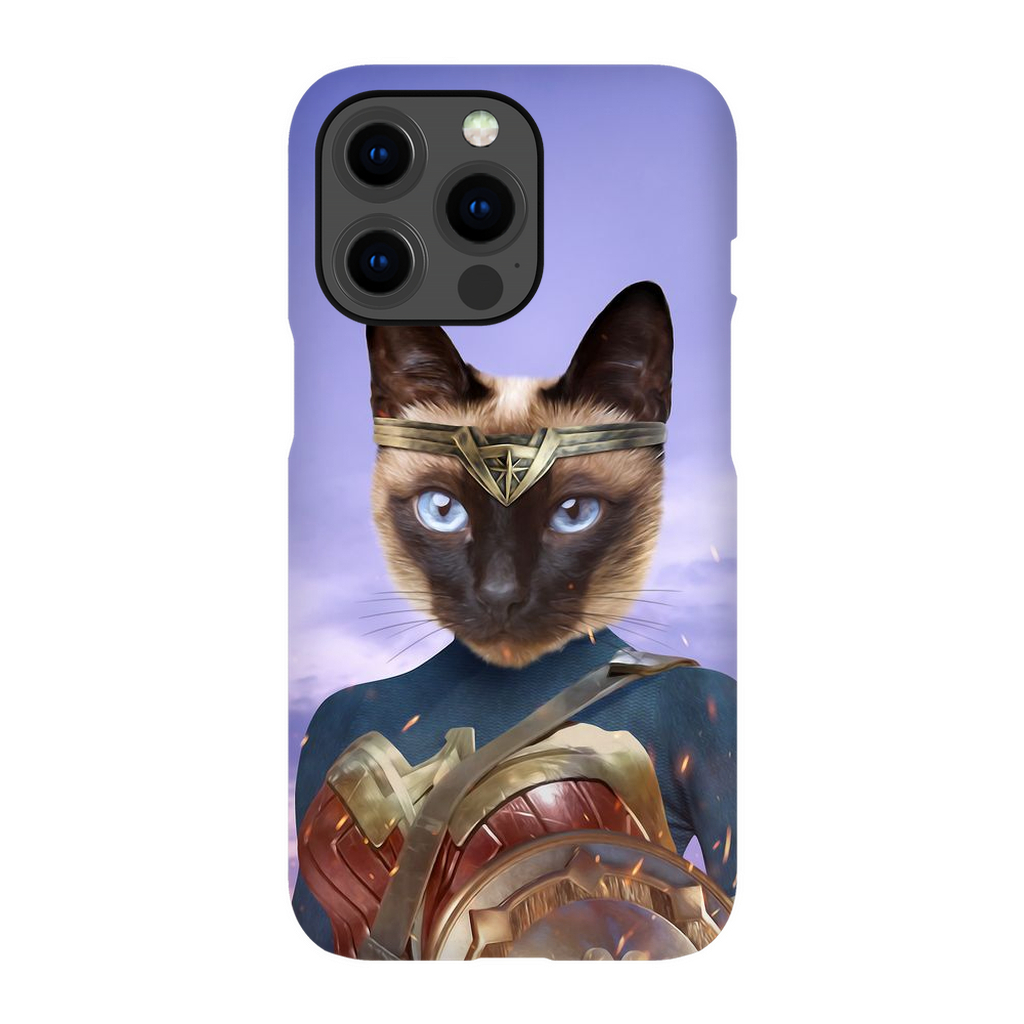 This custom pet phone case is inspired by Wonder Woman and superheroes.