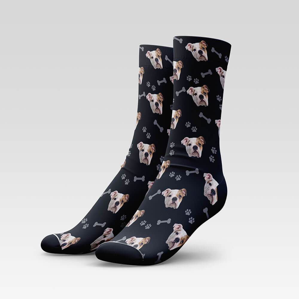 Great for yourself or as a unique gift for dog lovers, our custom dog socks will have tails wagging with excitement. Step into style and let your pup and your feet steal the show—order yours today!" 🐶✨