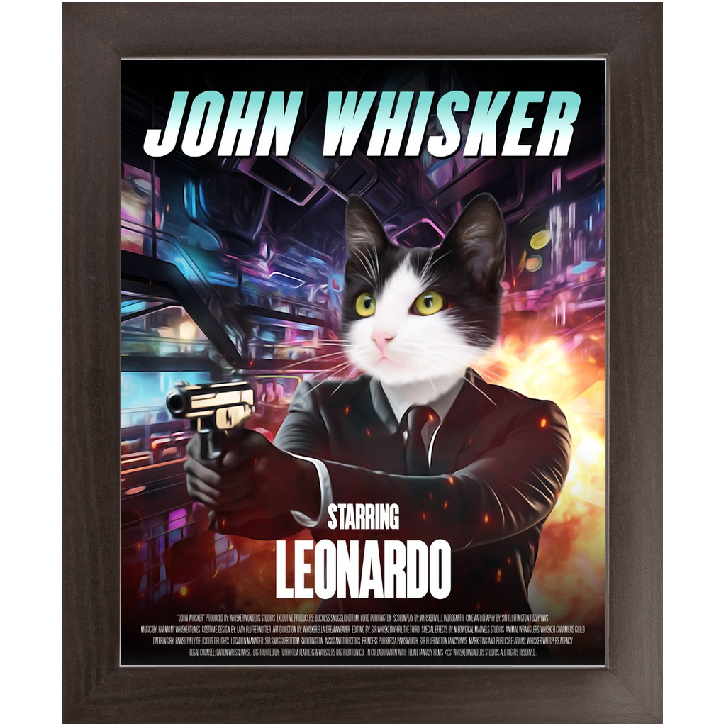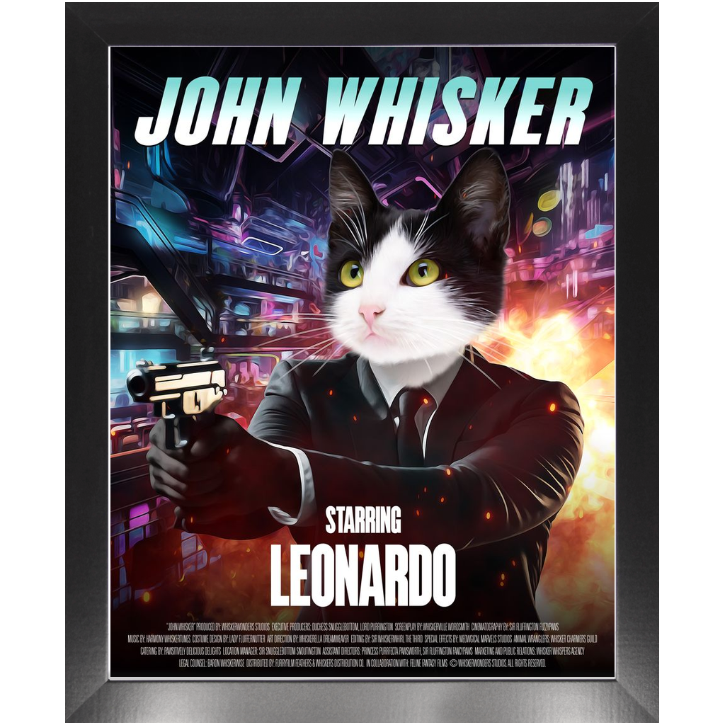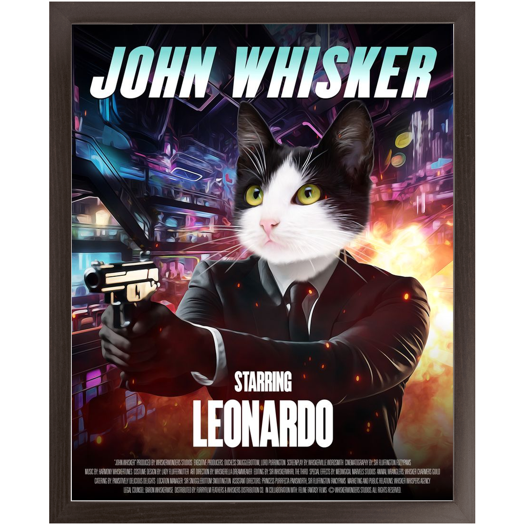 JOHN WHISKER Movie Poster - John Wick Inspired Custom Pet Portrait Framed Satin Paper Print