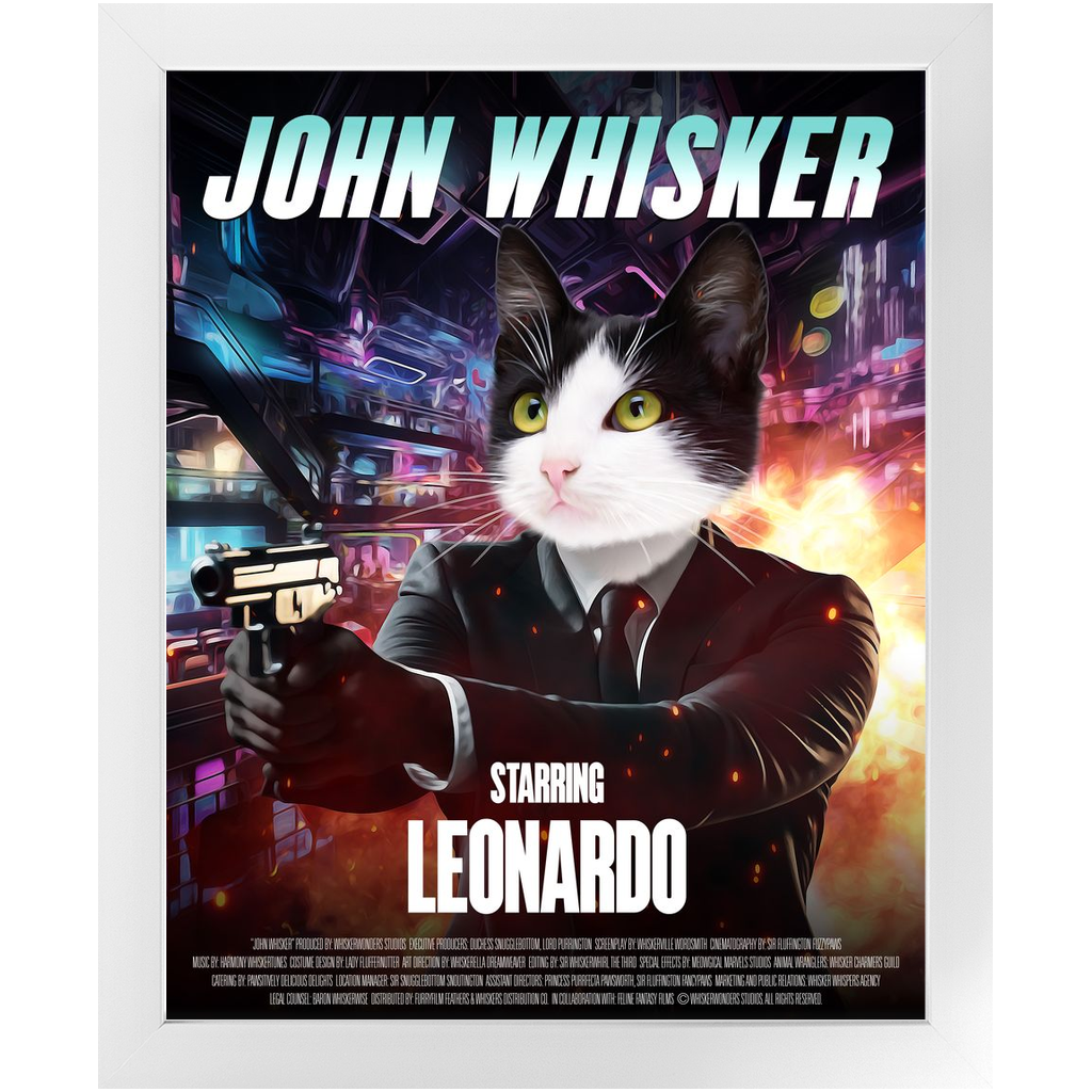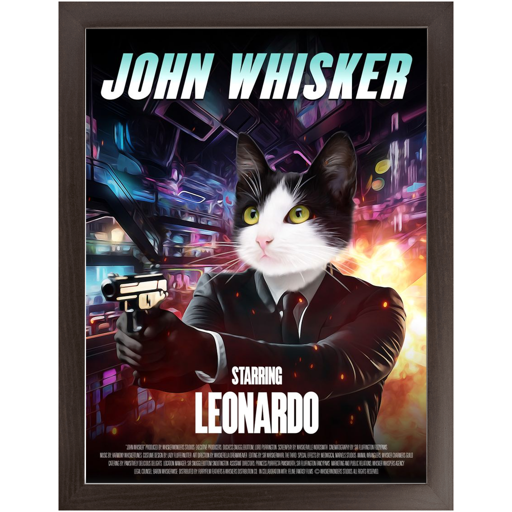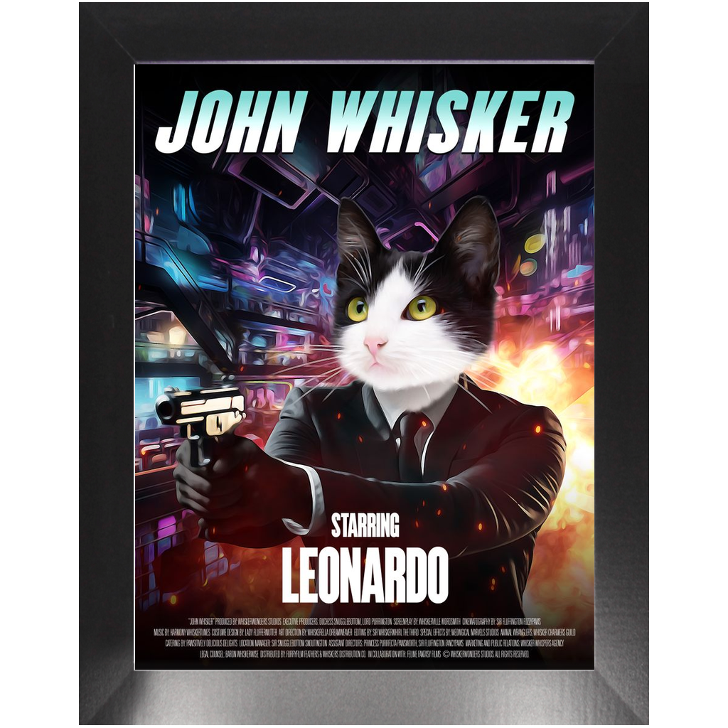 JOHN WHISKER Movie Poster - John Wick Inspired Custom Pet Portrait Framed Satin Paper Print