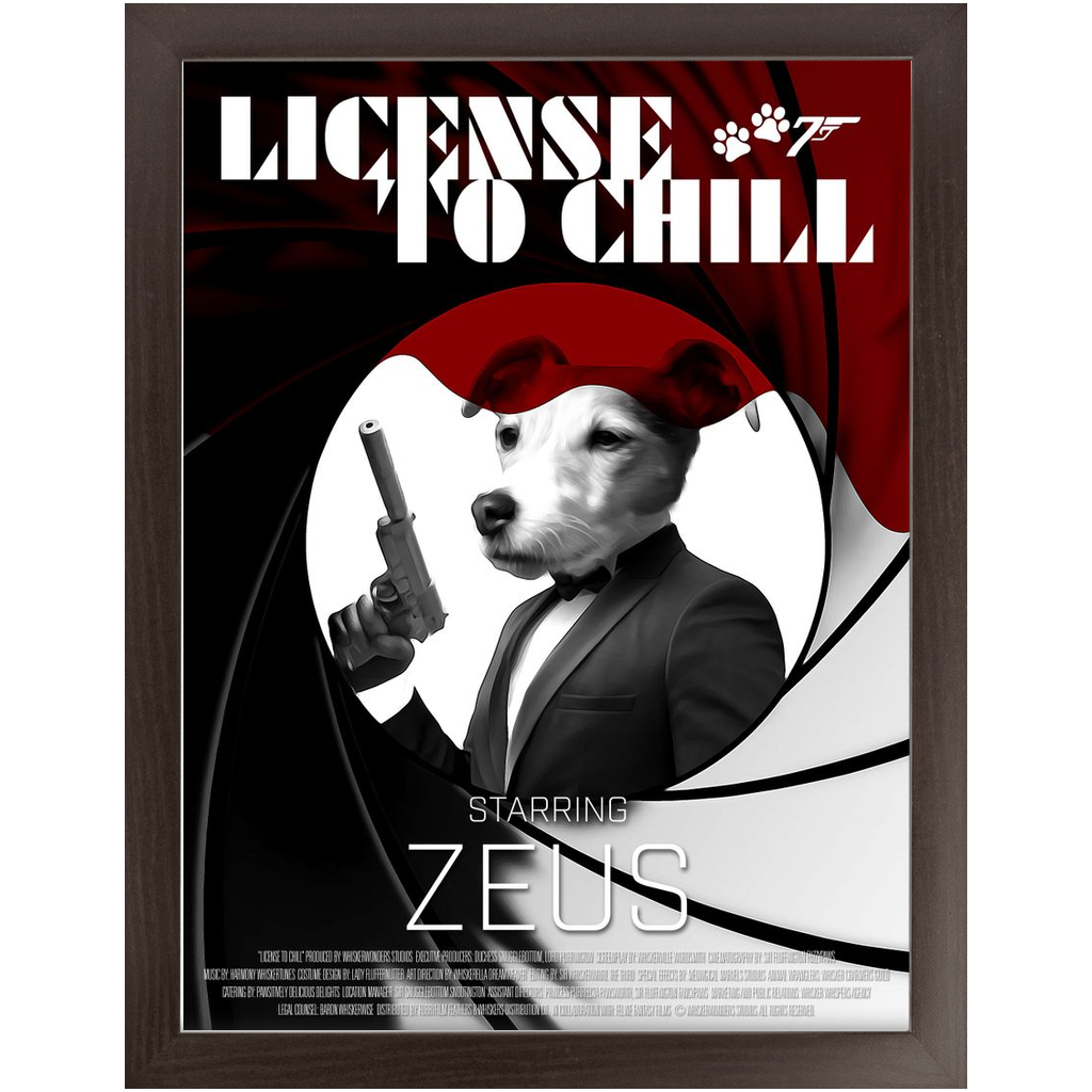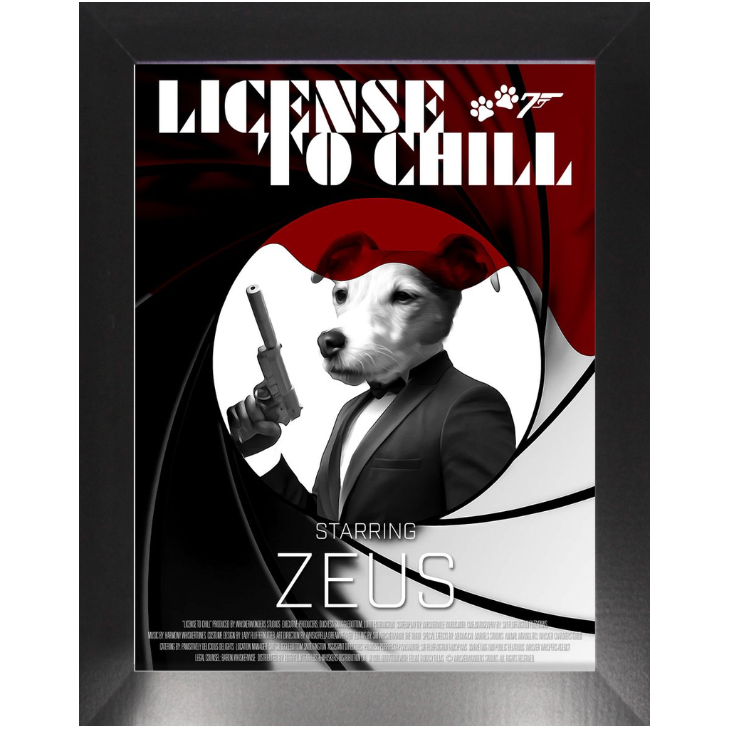 LICENSE TO CHILL Movie Poster - License To Kill Inspired Custom Pet Portrait Framed Satin Paper Print
