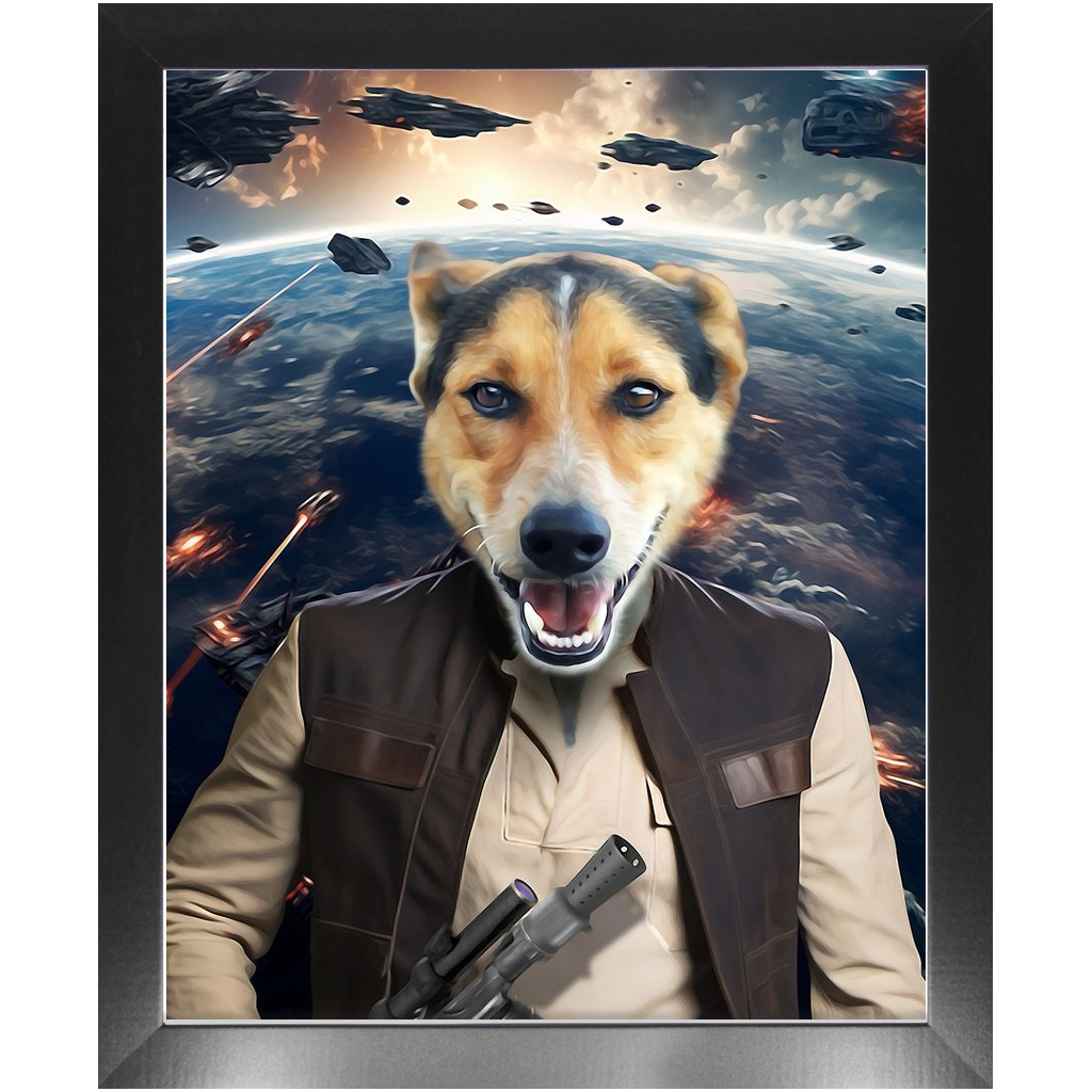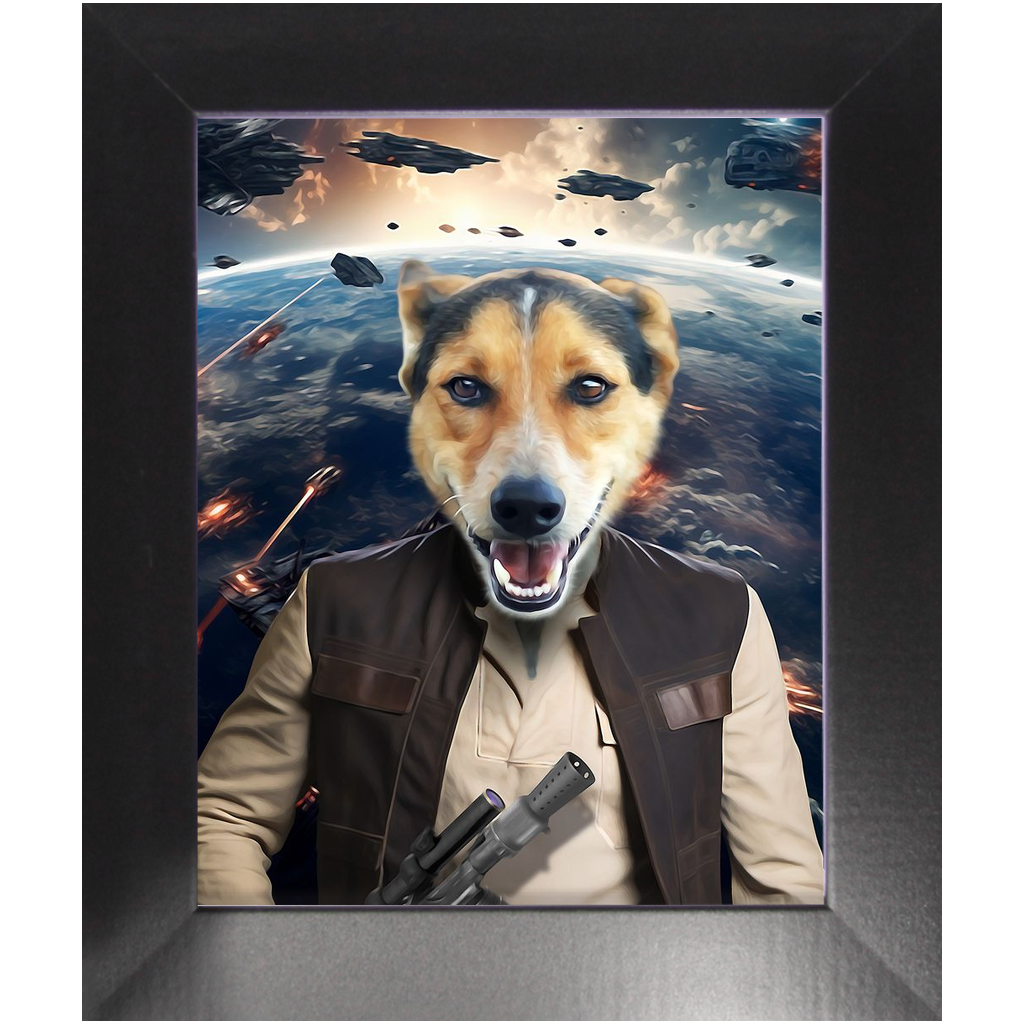 HAM SOSAGE IN SPACE - Hans Solo & Star Wars Inspired Custom Pet Portrait Framed Satin Paper Print
