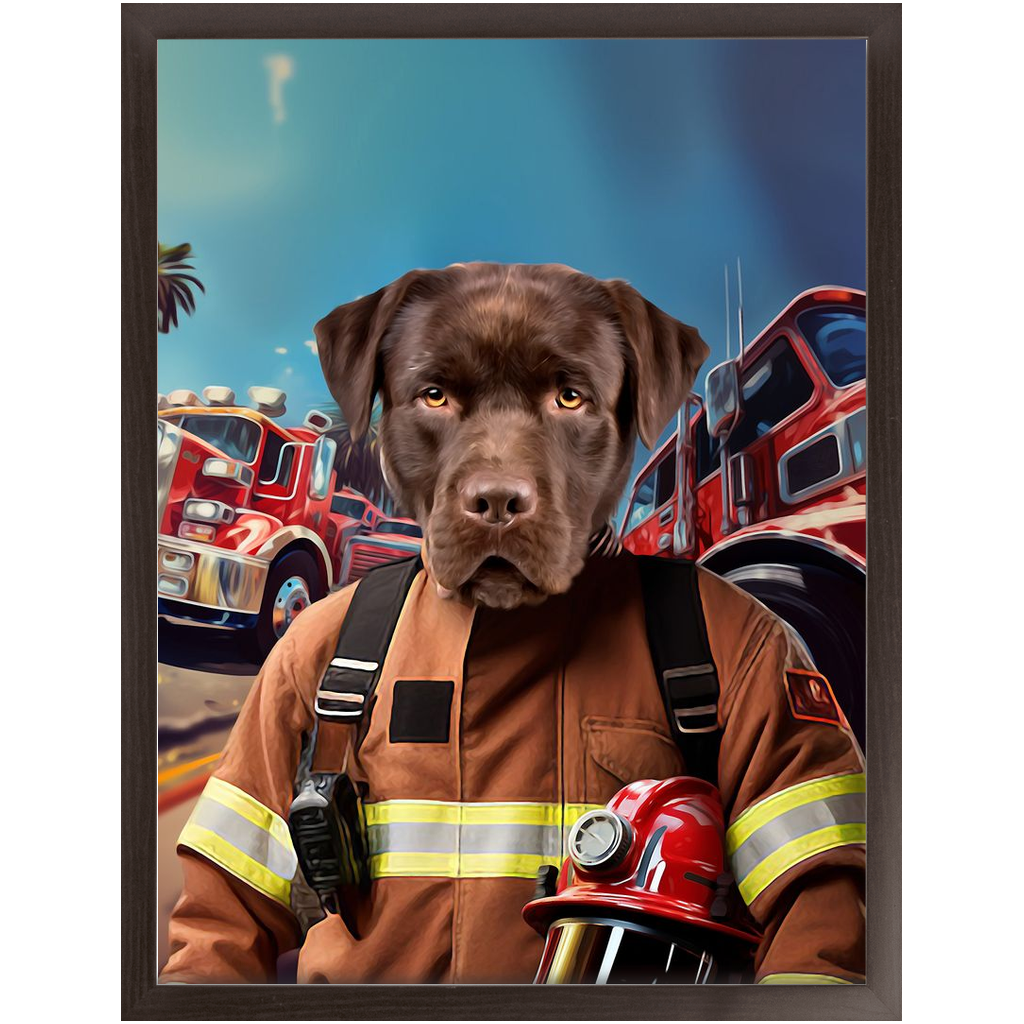 Set your home decor ablaze with our custom pet portrait canvas prints inspired by pets dressed as fearless firemen. From their tiny helmets to firefighter jackets, we capture your beloved pet's heroic transformation into a lifesaving firefighter. Whether they're extinguishing hearts or just melting them, our talented artists bring out the courage and charm of your pet. These heartwarming canvases add a touch of bravery and personality to your surroundings, commemorating your pet's unique spirit. Ignite your space with warmth and love by proudly displaying our custom pet firefighter portraits – because your pet is always ready to be your hero!