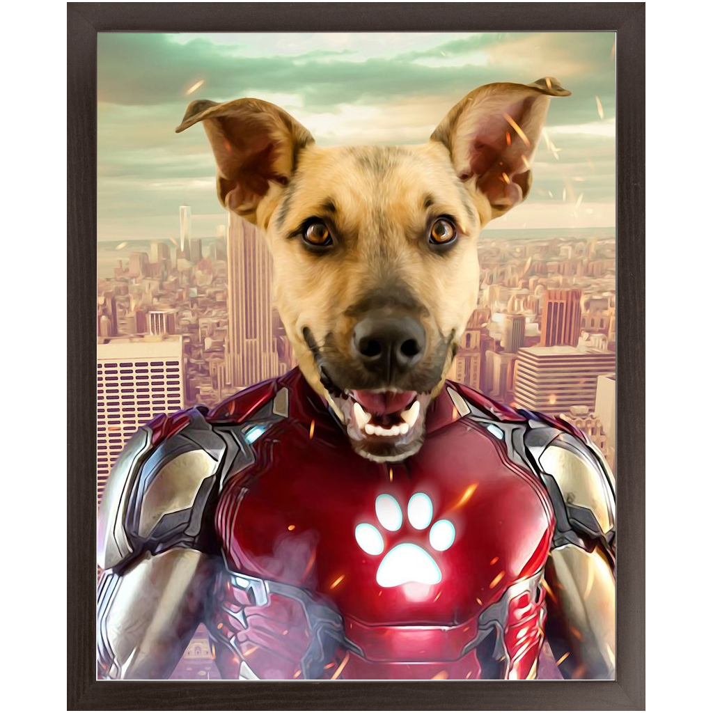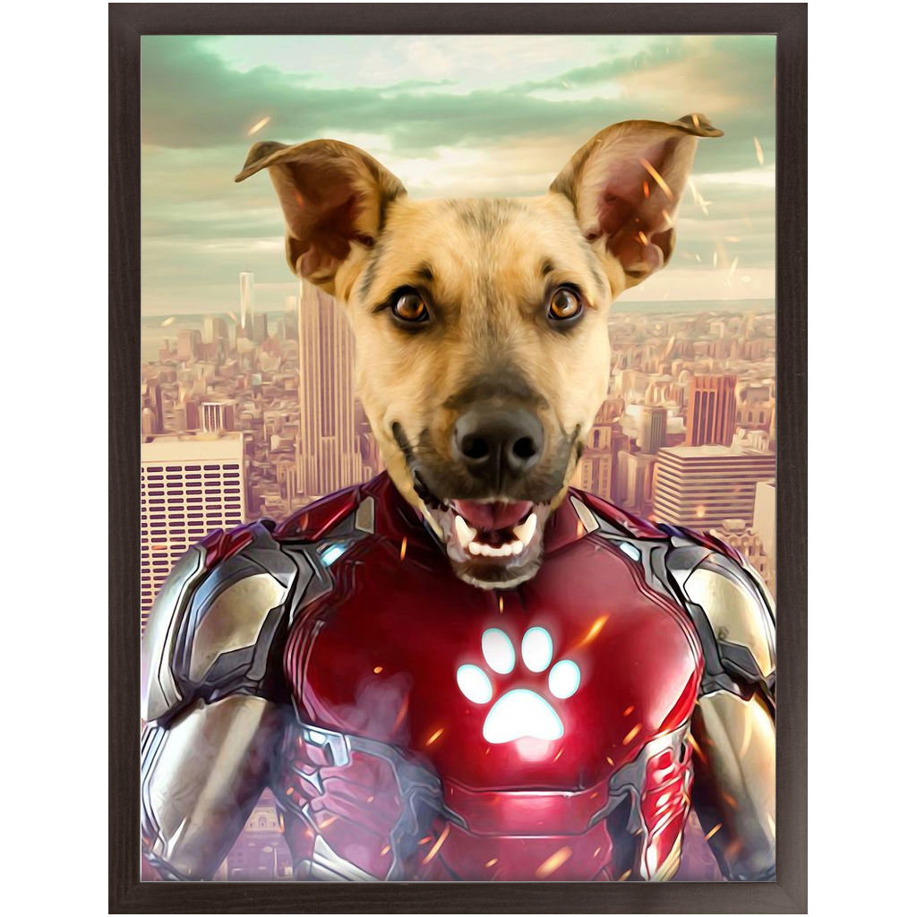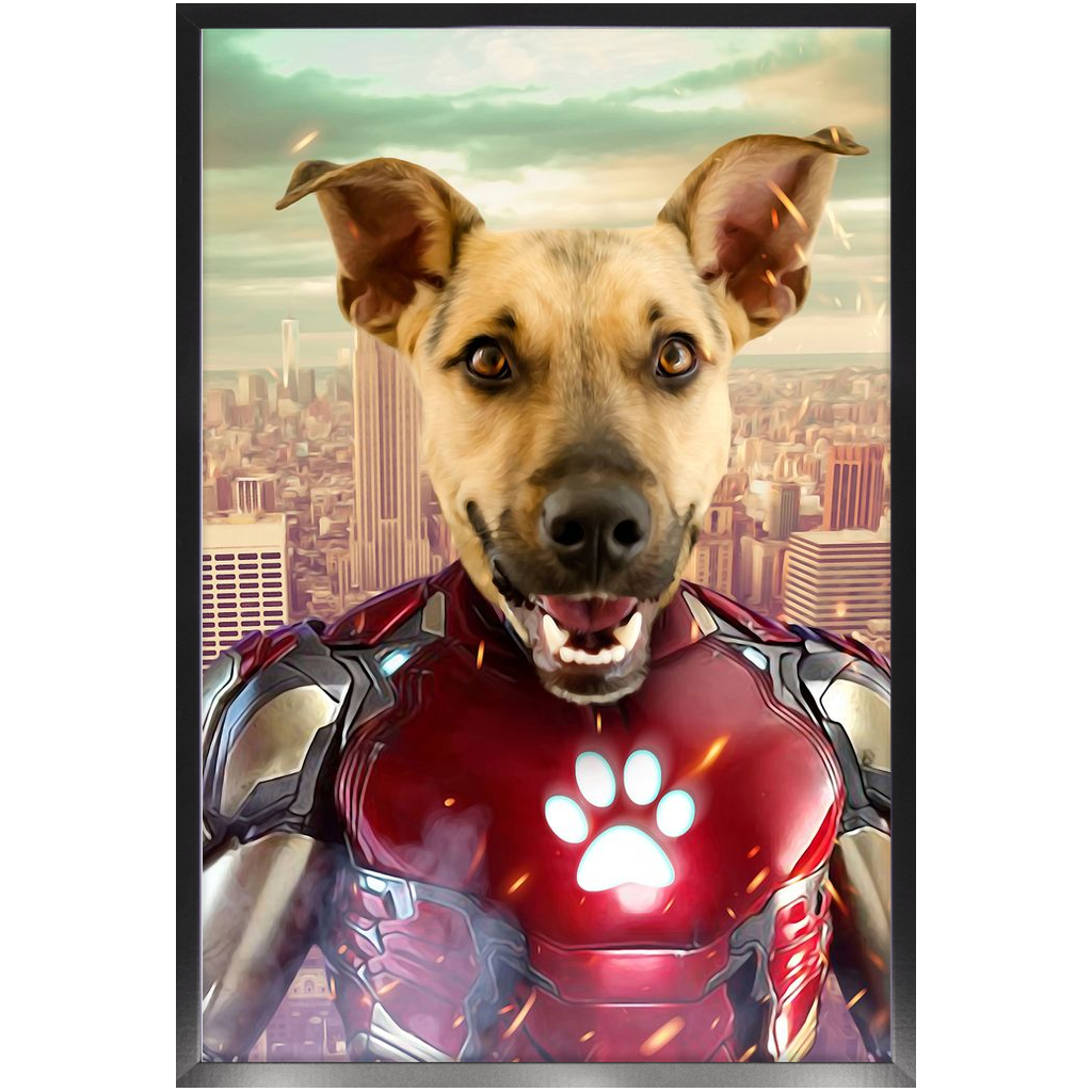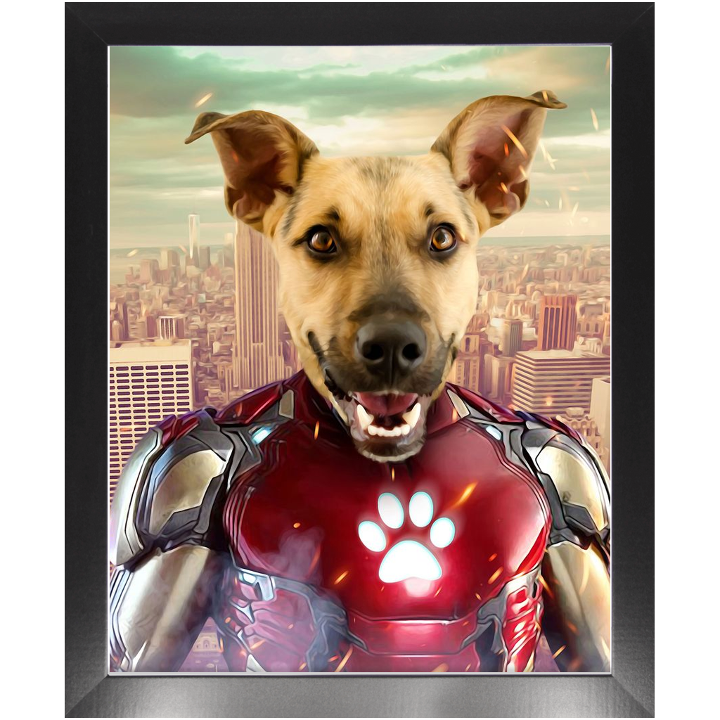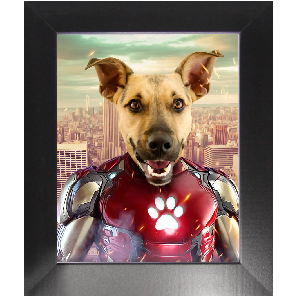 Iron Mutt - Iron Man Superhero Inspired Custom Pet Portrait Framed Satin Paper Print