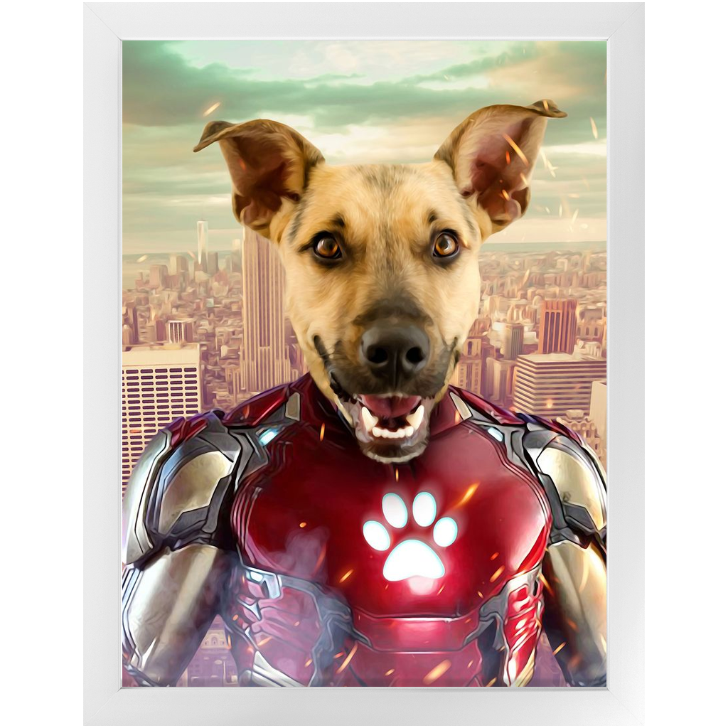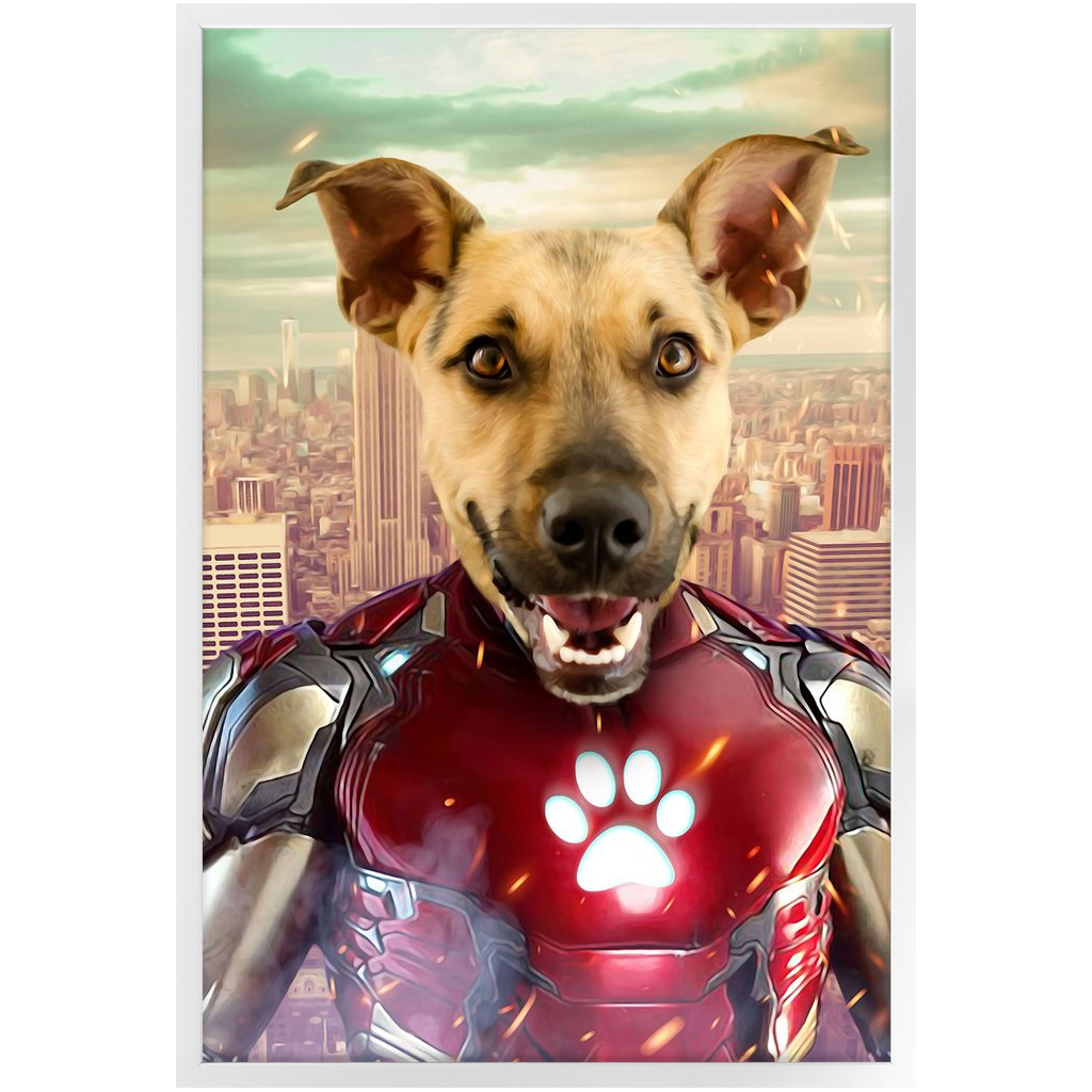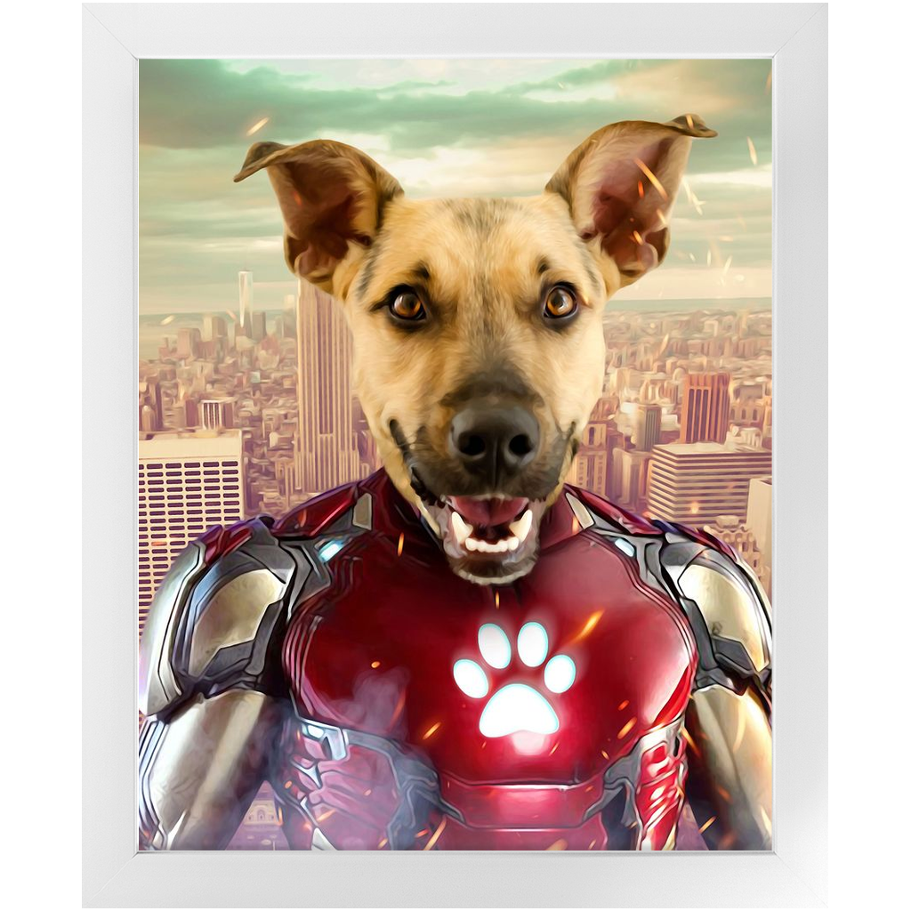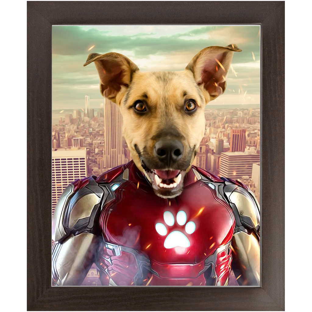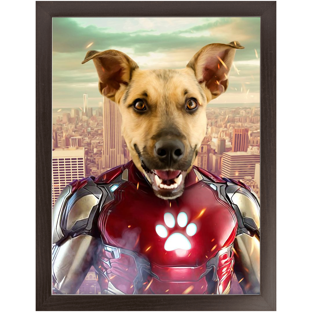 Iron Mutt - Iron Man Superhero Inspired Custom Pet Portrait Framed Satin Paper Print