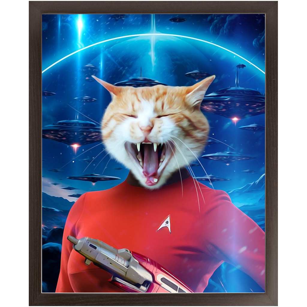 Your pet is looking cute and claw-some as captain of the USS Enterprise starship. Navigating meow-ter space, your furry friend is on the hunt for extra-furrestrials. Always in command, they’ll be very purr-suasive at getting more treats and pats from you. Show them some love and Spock up on treats to avoid any chance of cat-astrophe.
