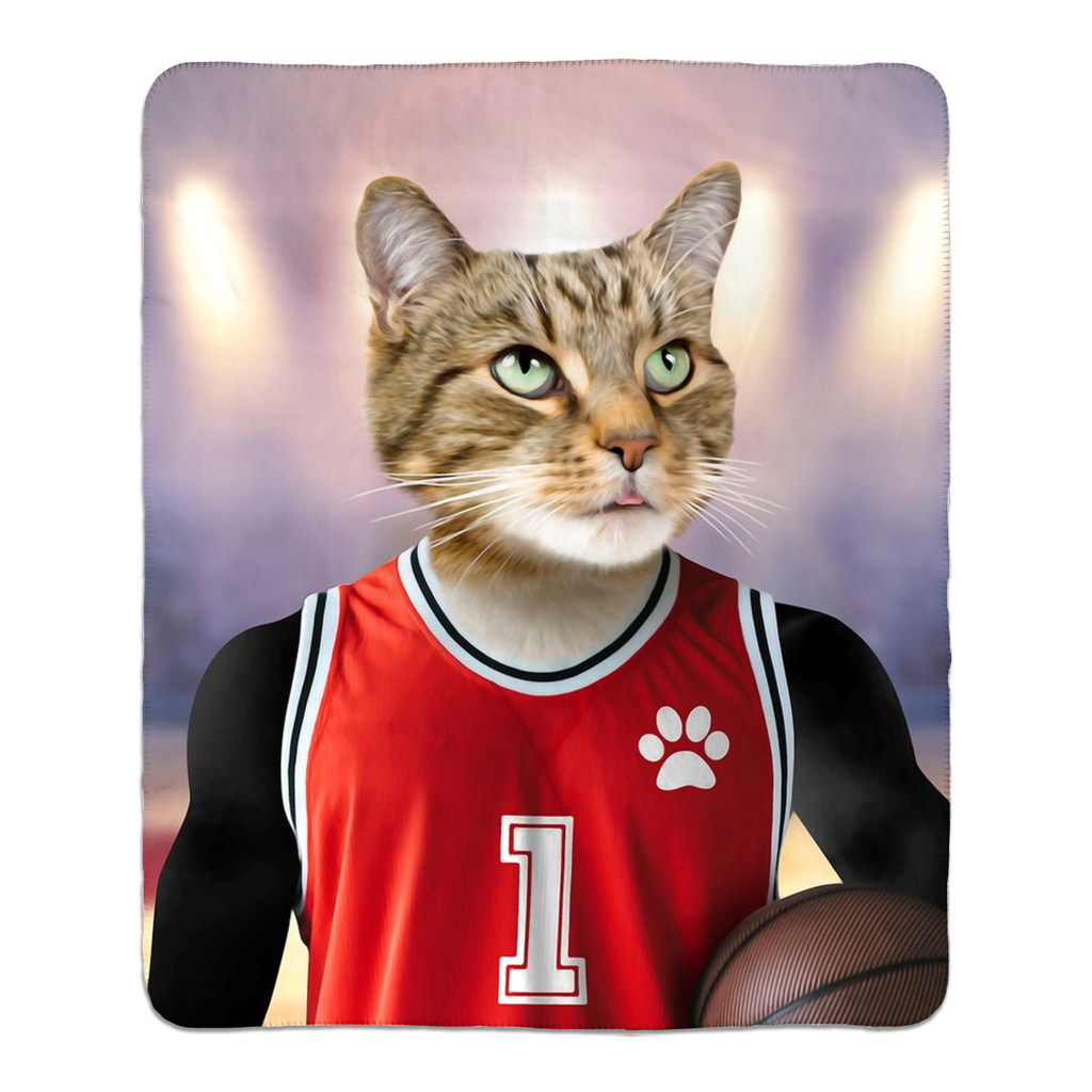 This custom pet photo blanket is inspired by basketball and sport.