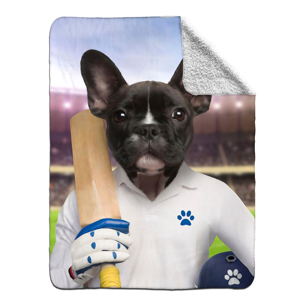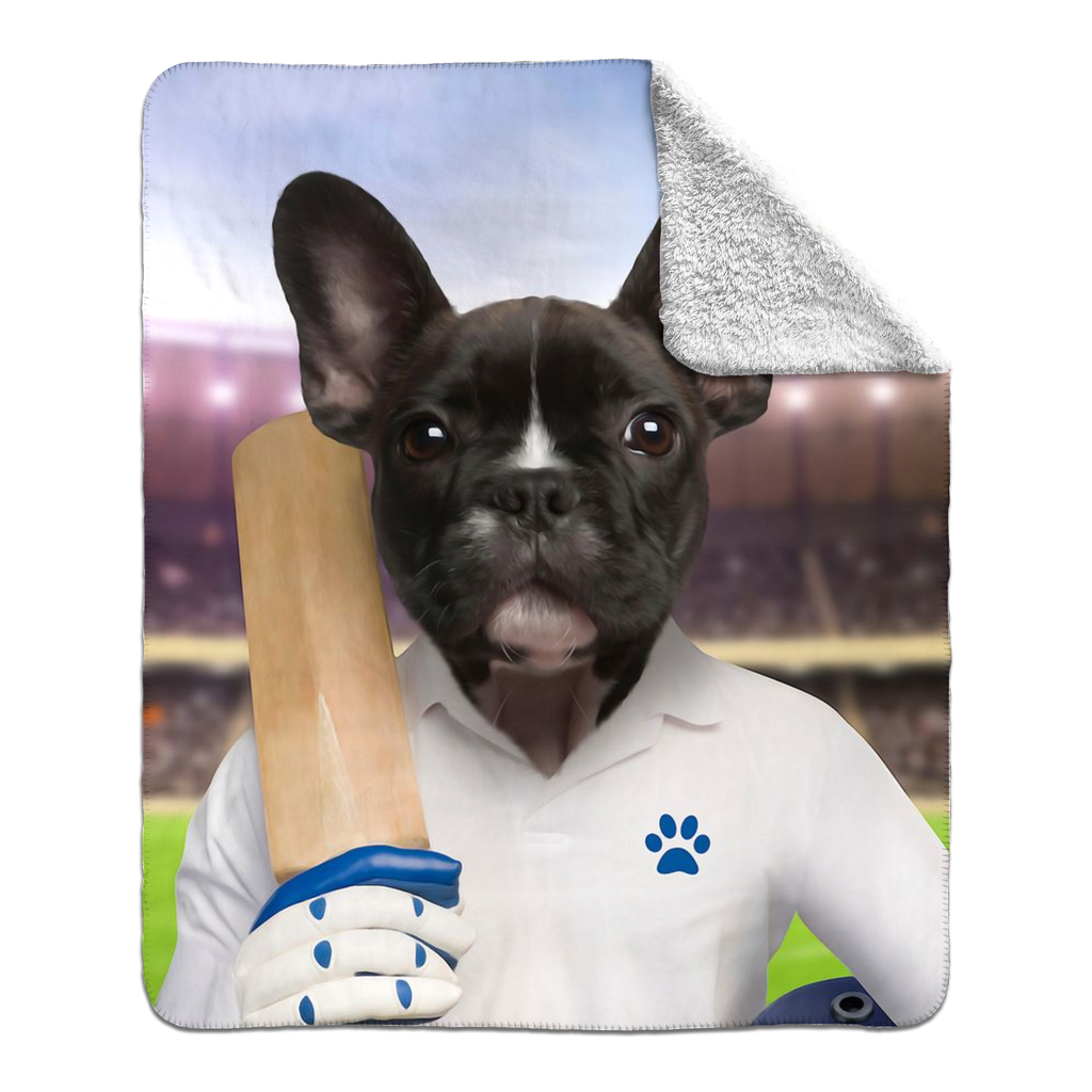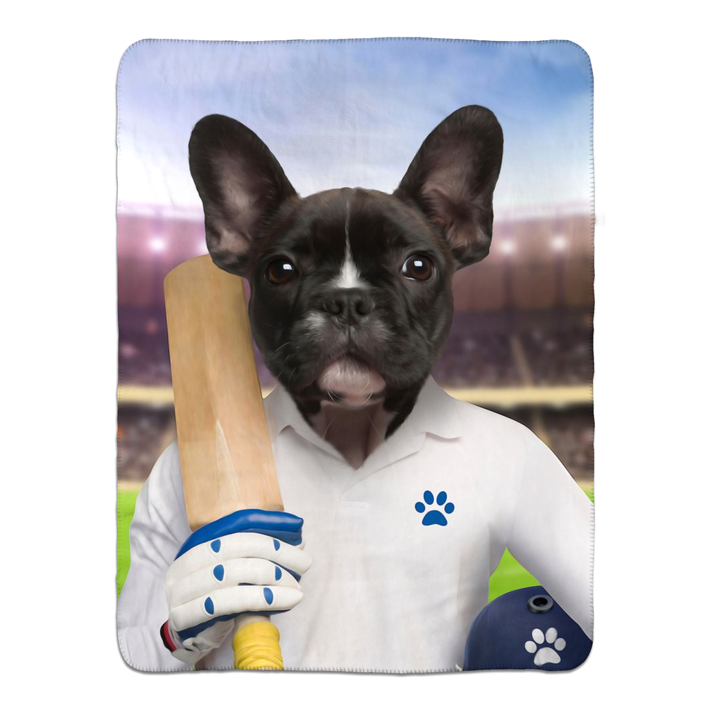 This custom pet photo blanket is inspired by cricket and sport.