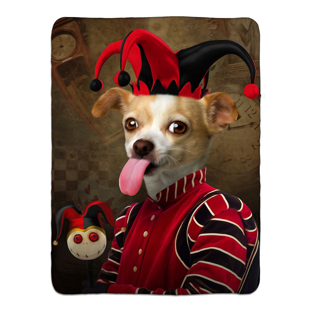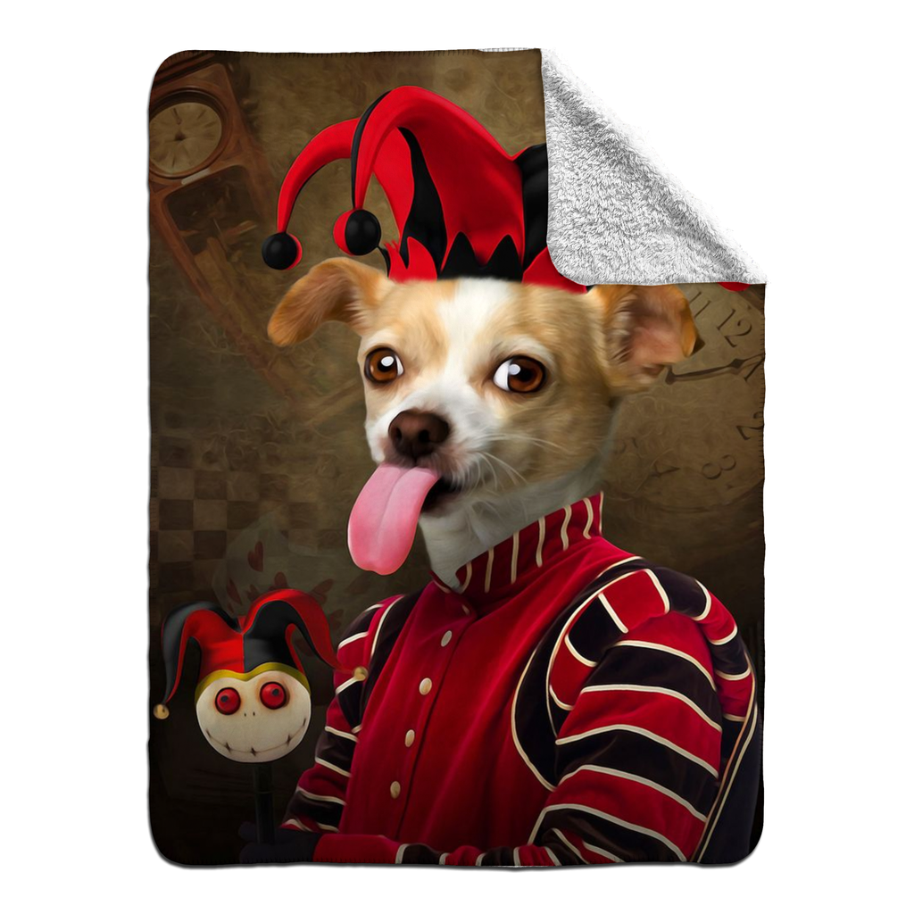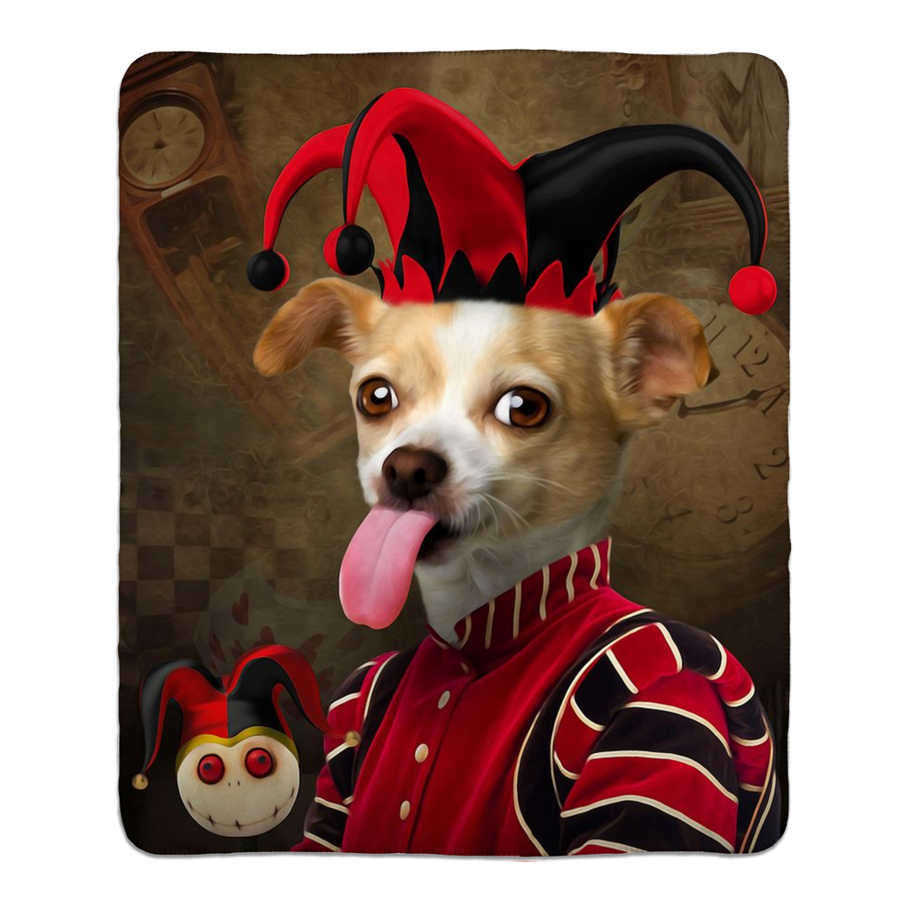This custom pet photo blanket is inspired by the renaissance portraits of old, jesters and clowns.