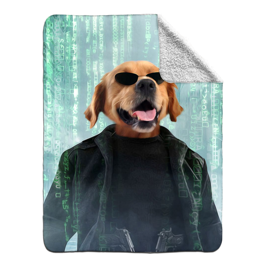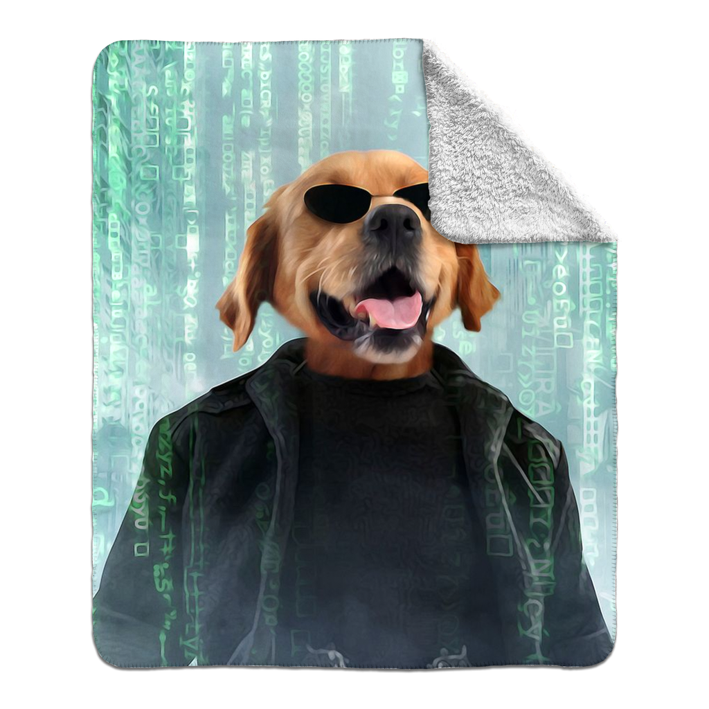 This custom pet photo blanket is inspired by Neo and The Matrix.