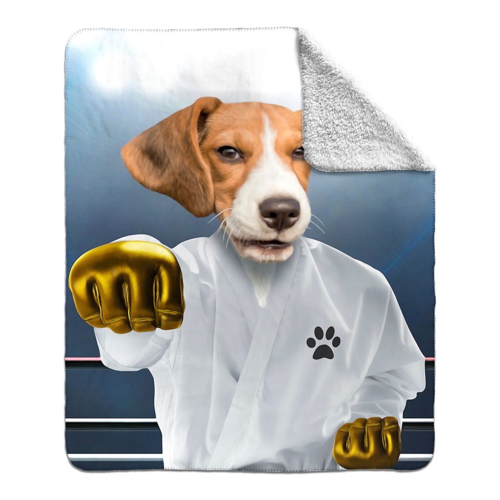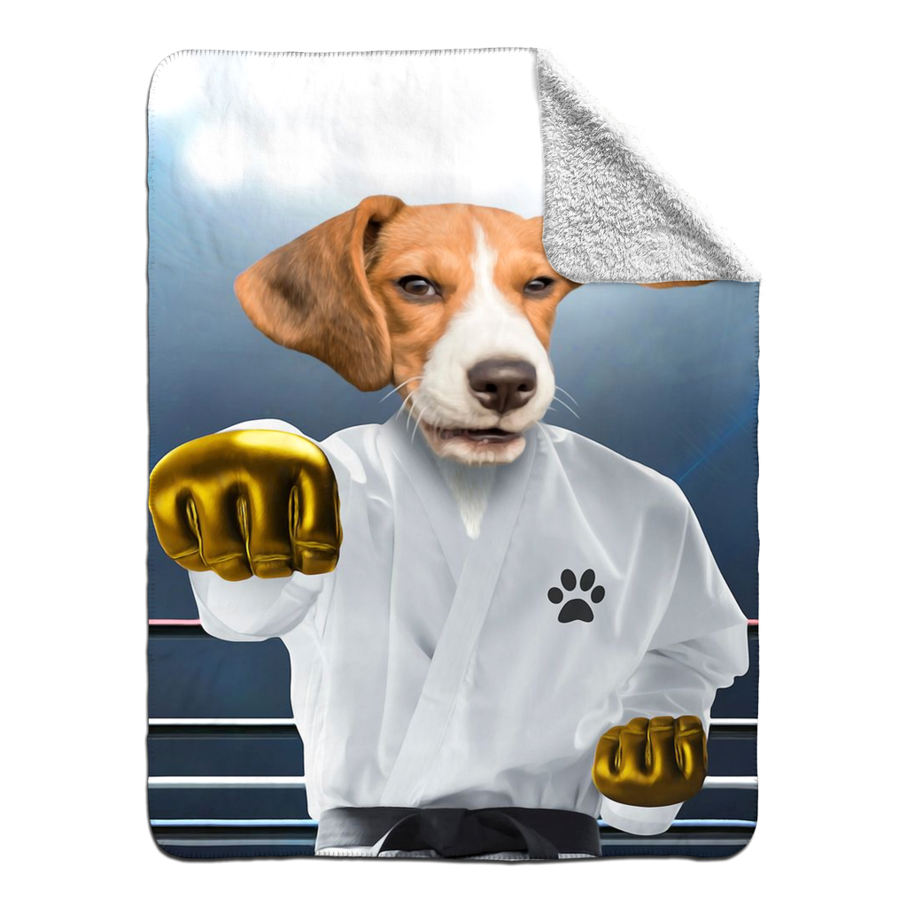 This custom pet photo blanket is inspired by martial arts, karate and taekwondo.