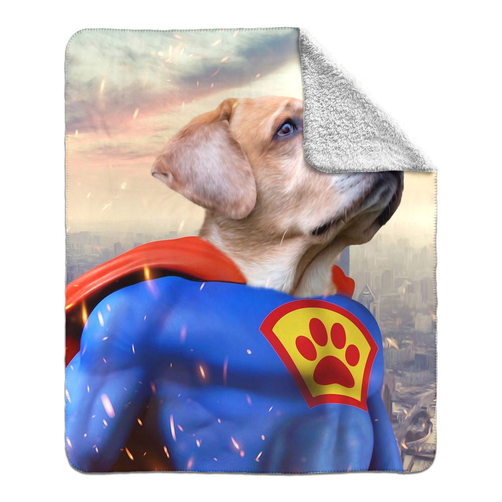 This custom pet photo blanket is inspired by Superman and superheroes.
