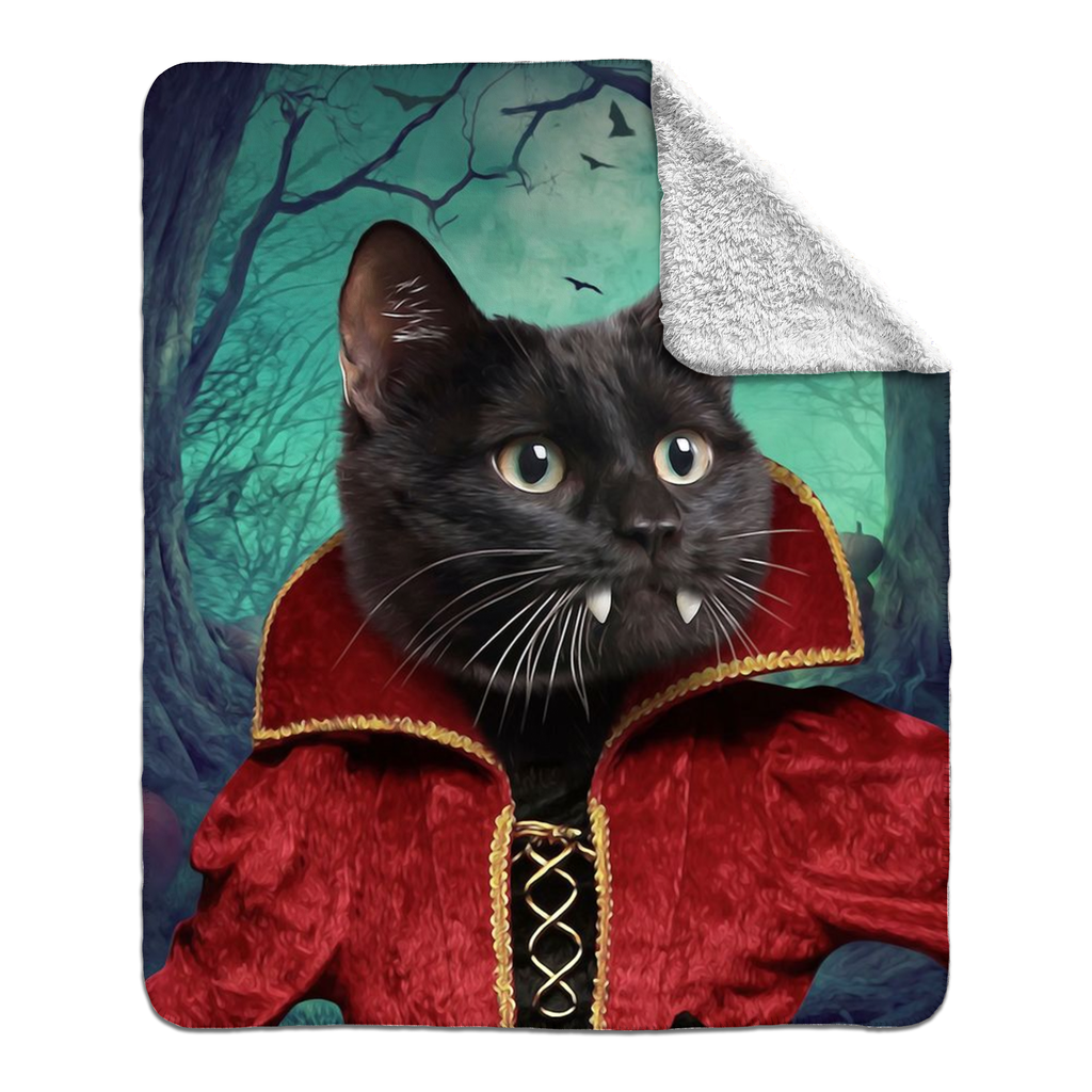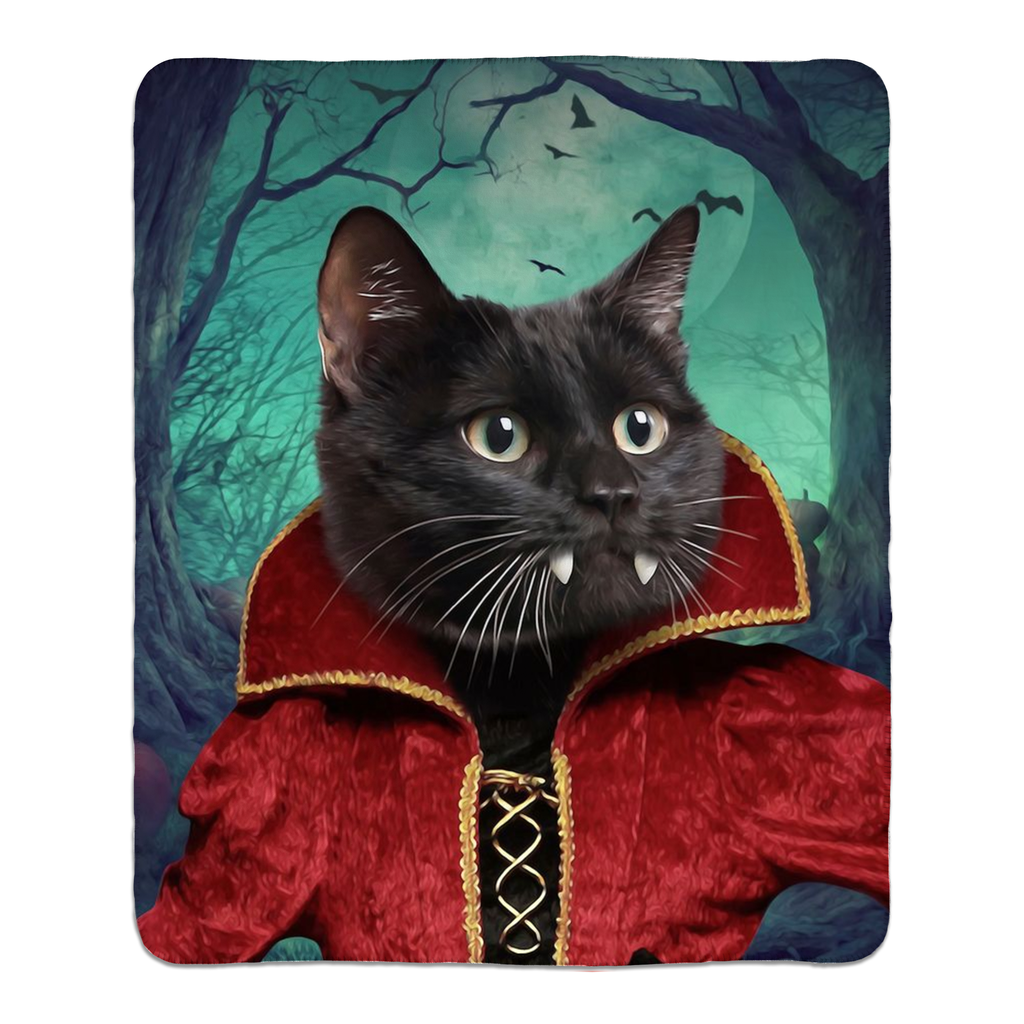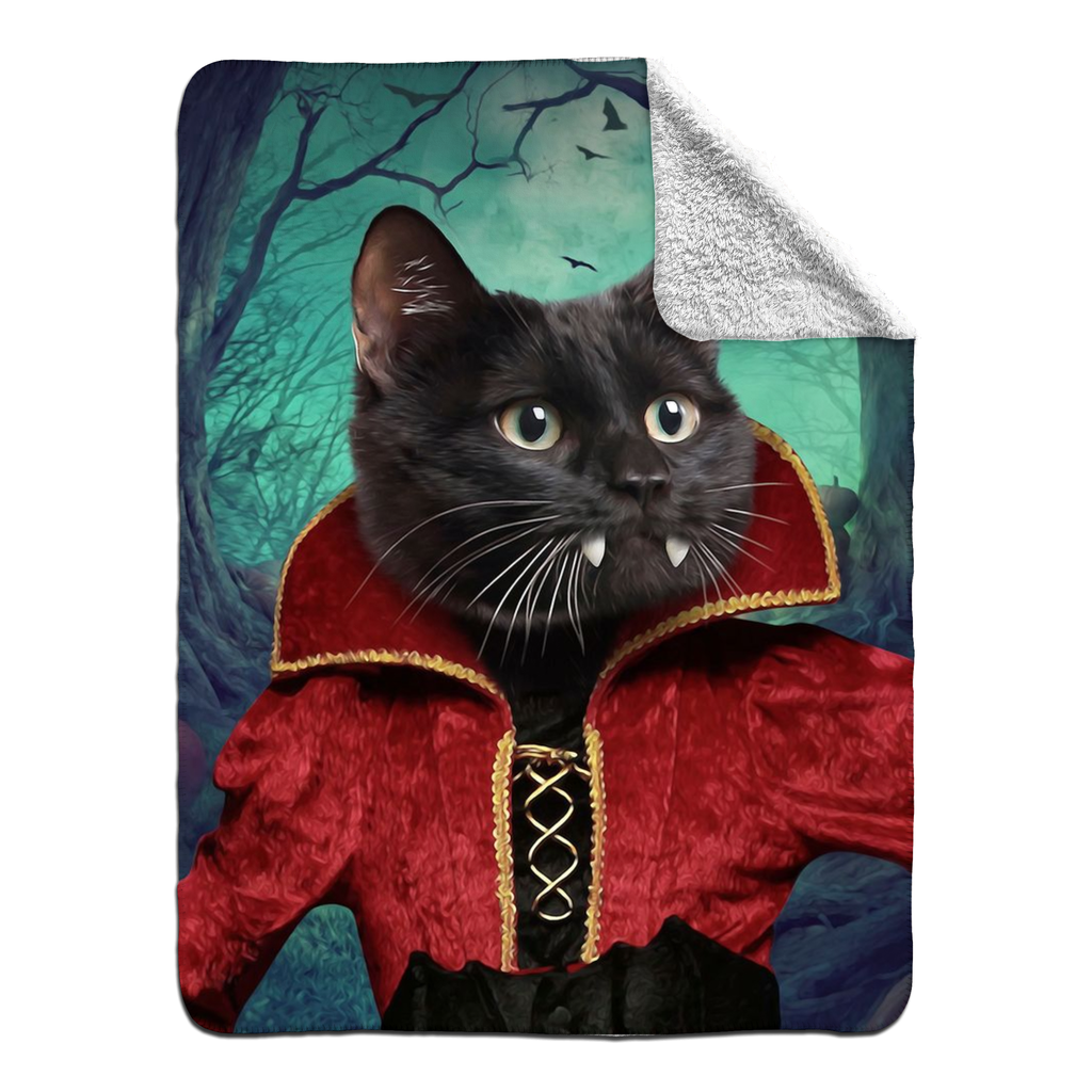 This custom pet photo blanket is inspired by Halloween and vampires.