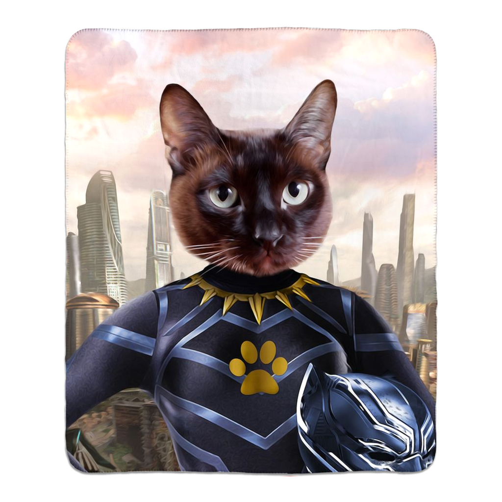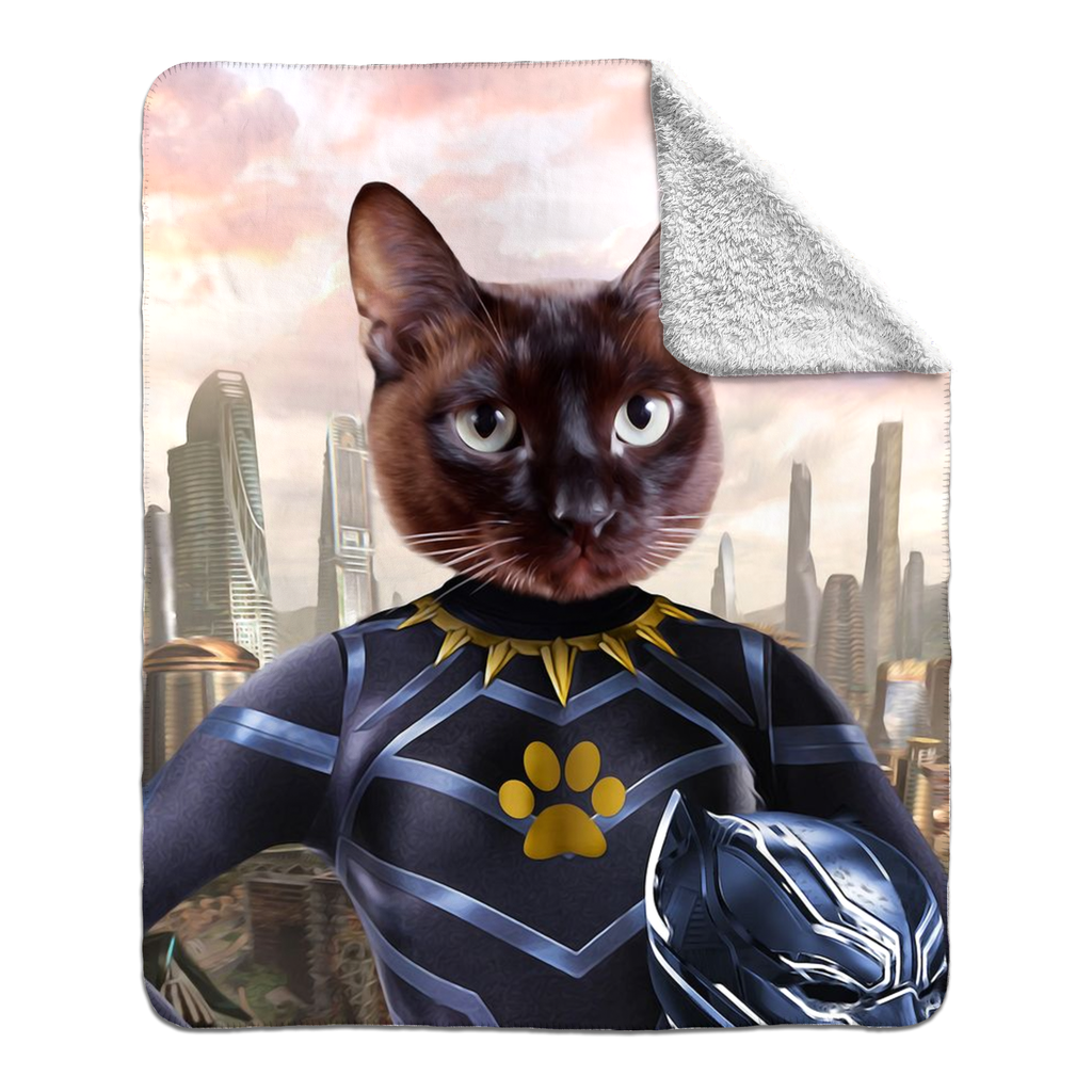 This custom pet photo blanket is inspired by Black Panther and superheroes.
