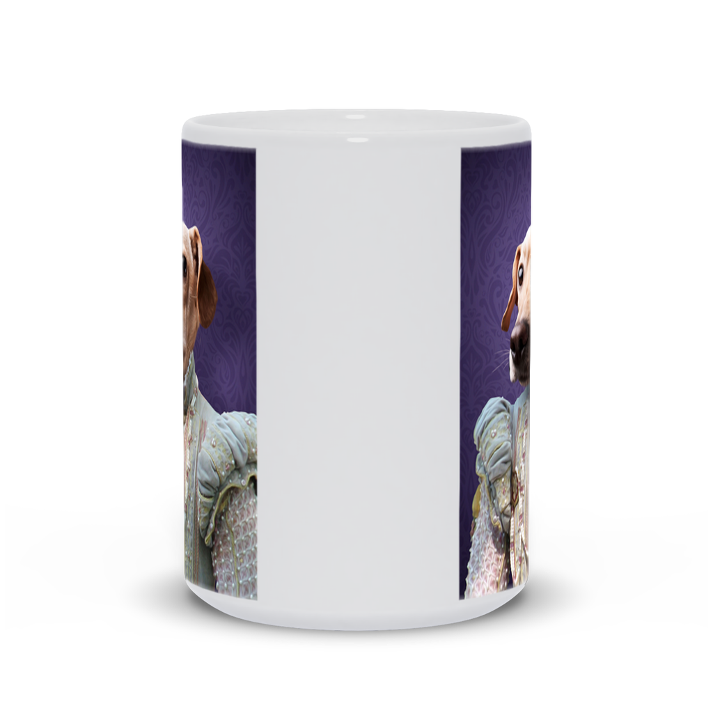 This pet portrait coffee mug is inspired by the Renaissance portraits of old.
