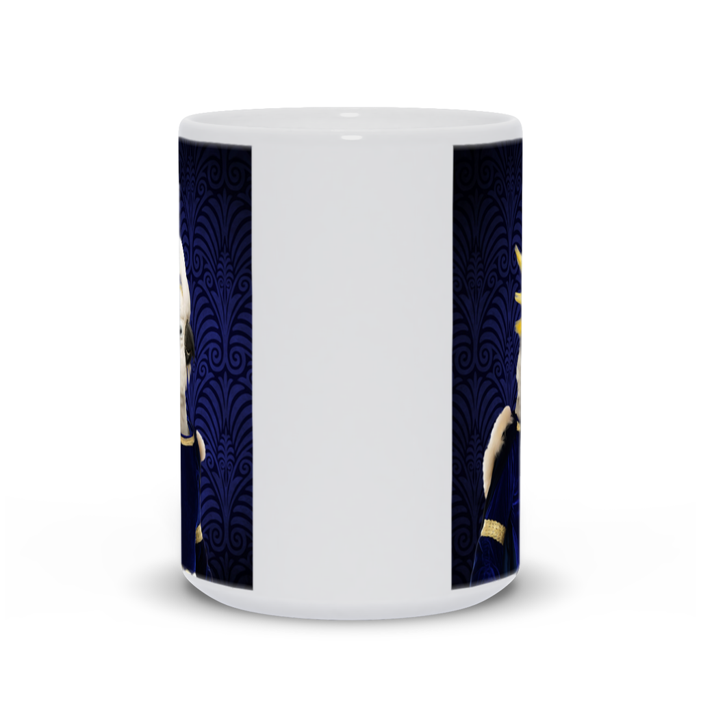 This pet portrait coffee mug is inspired by the Renaissance portraits of old.