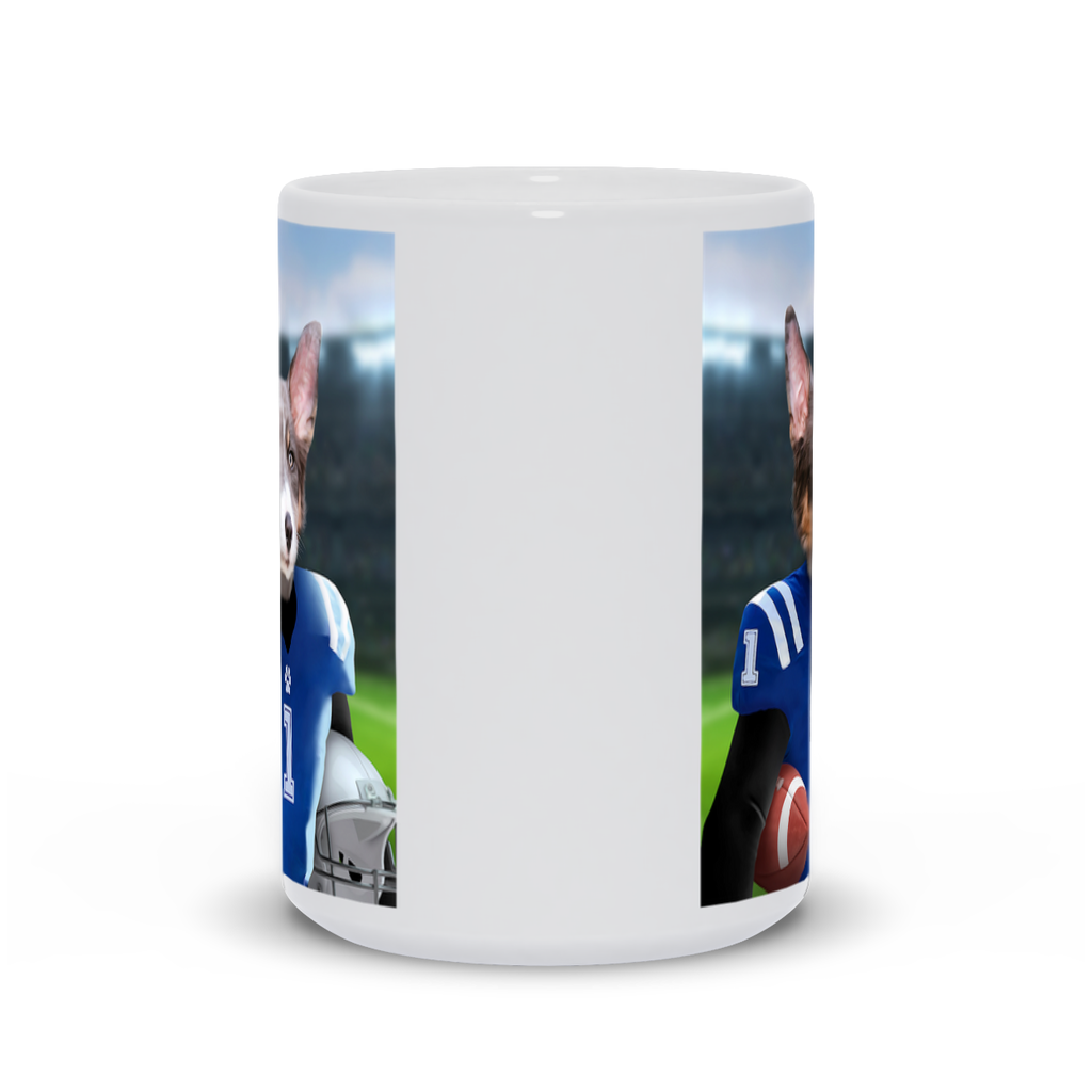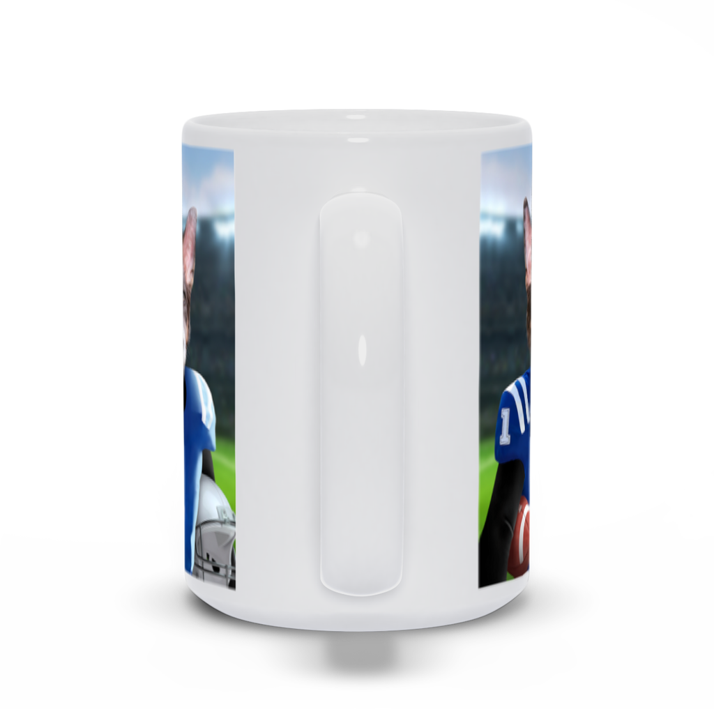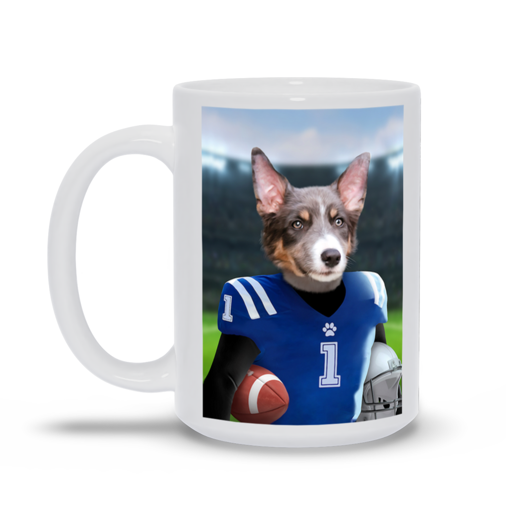 This pet portrait coffee mug is inspired by American football and gridiron.