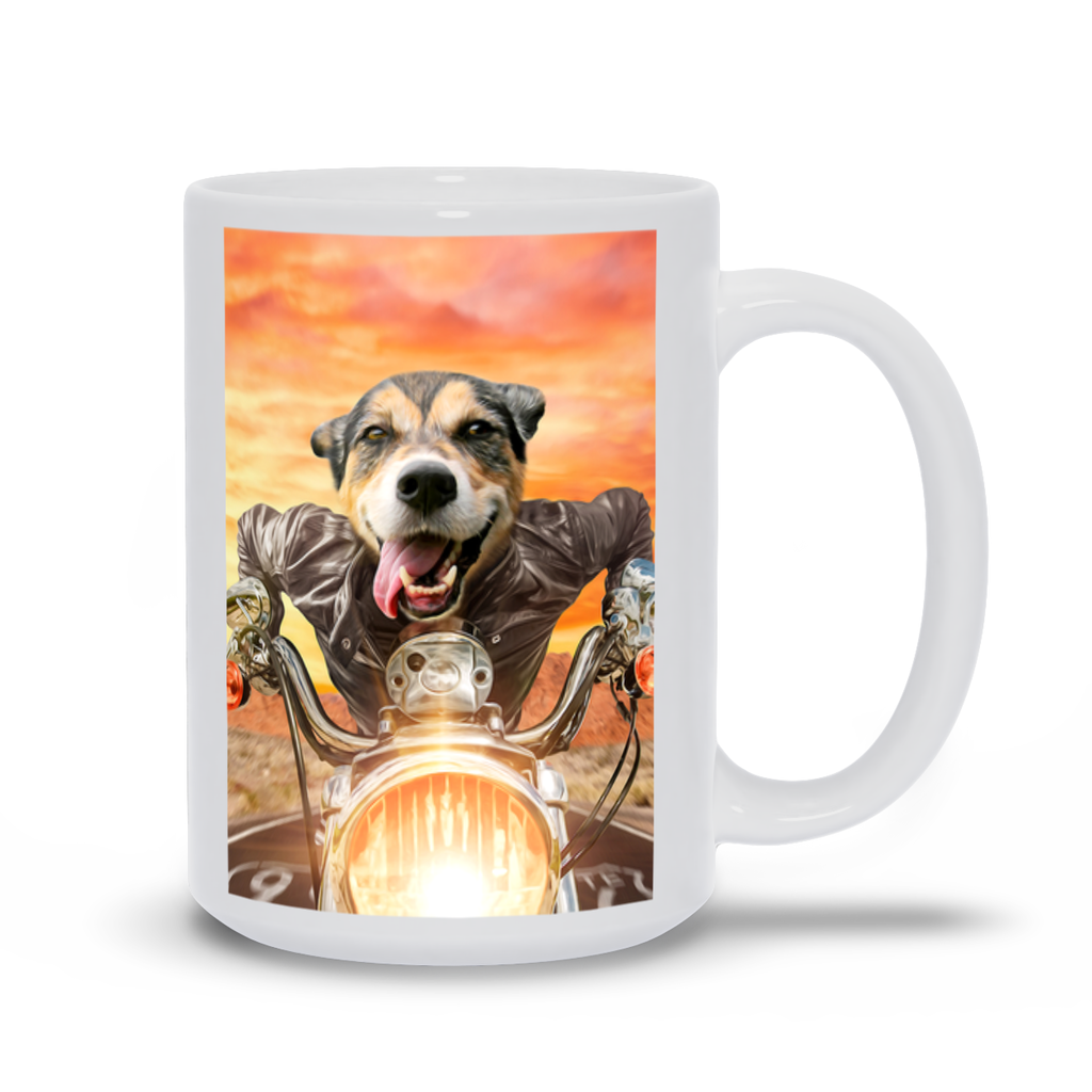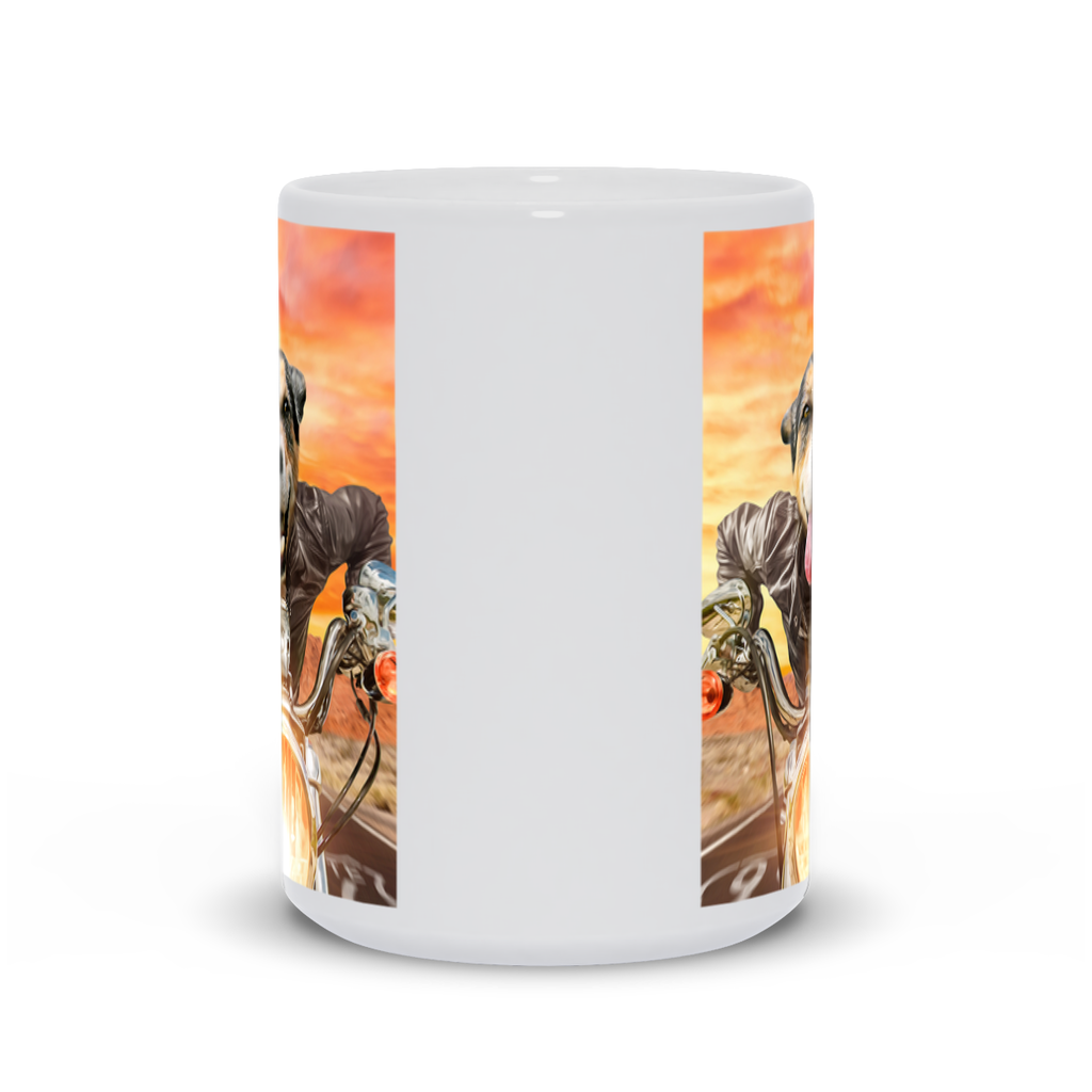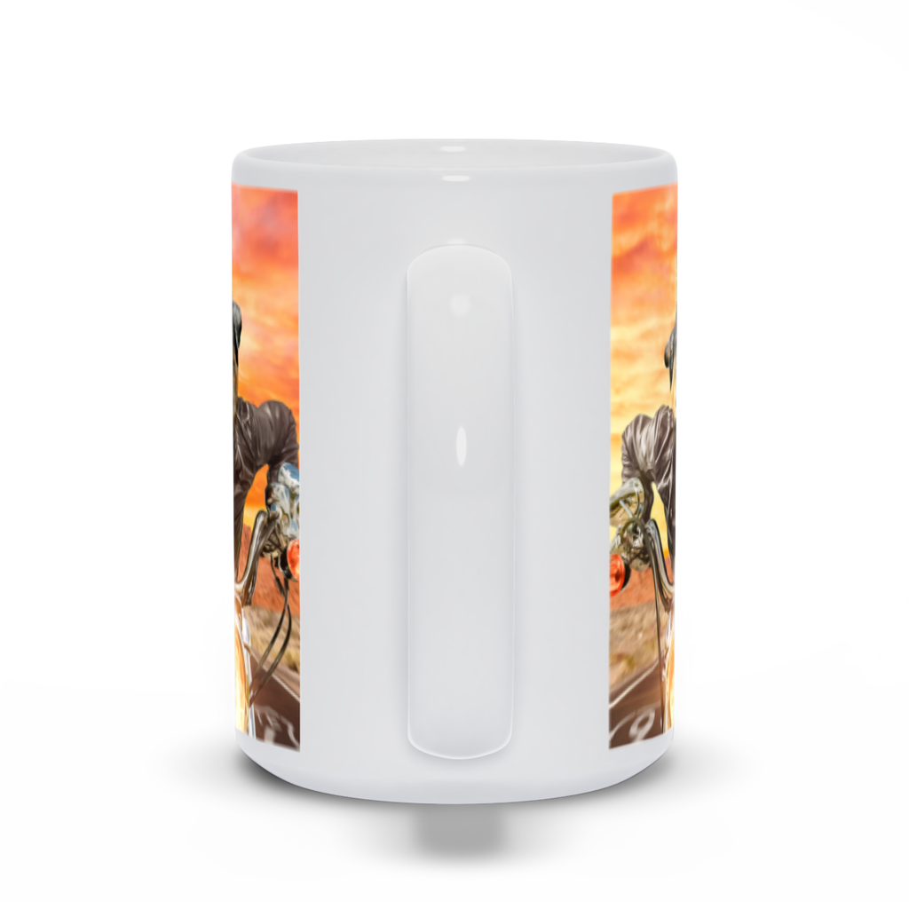 This pet portrait coffee mug is inspired by East Rider and motorcycles.