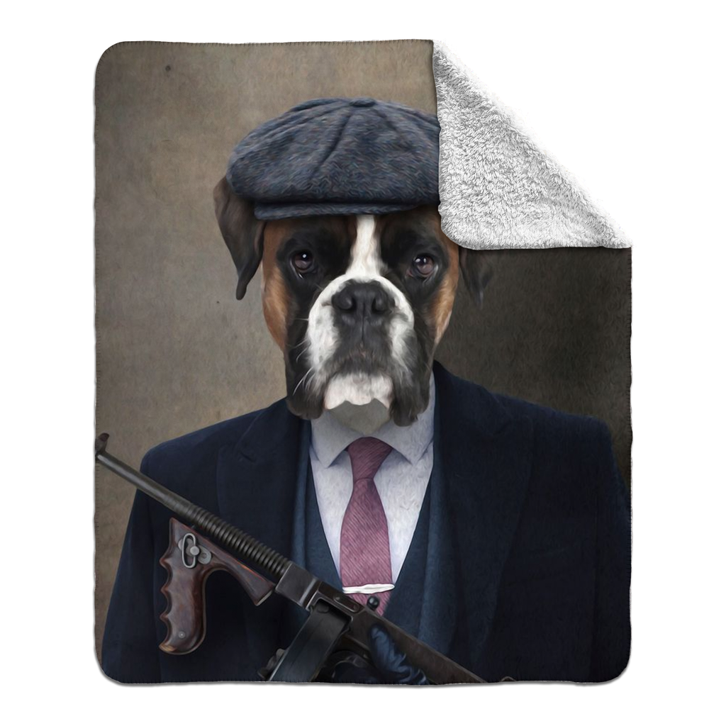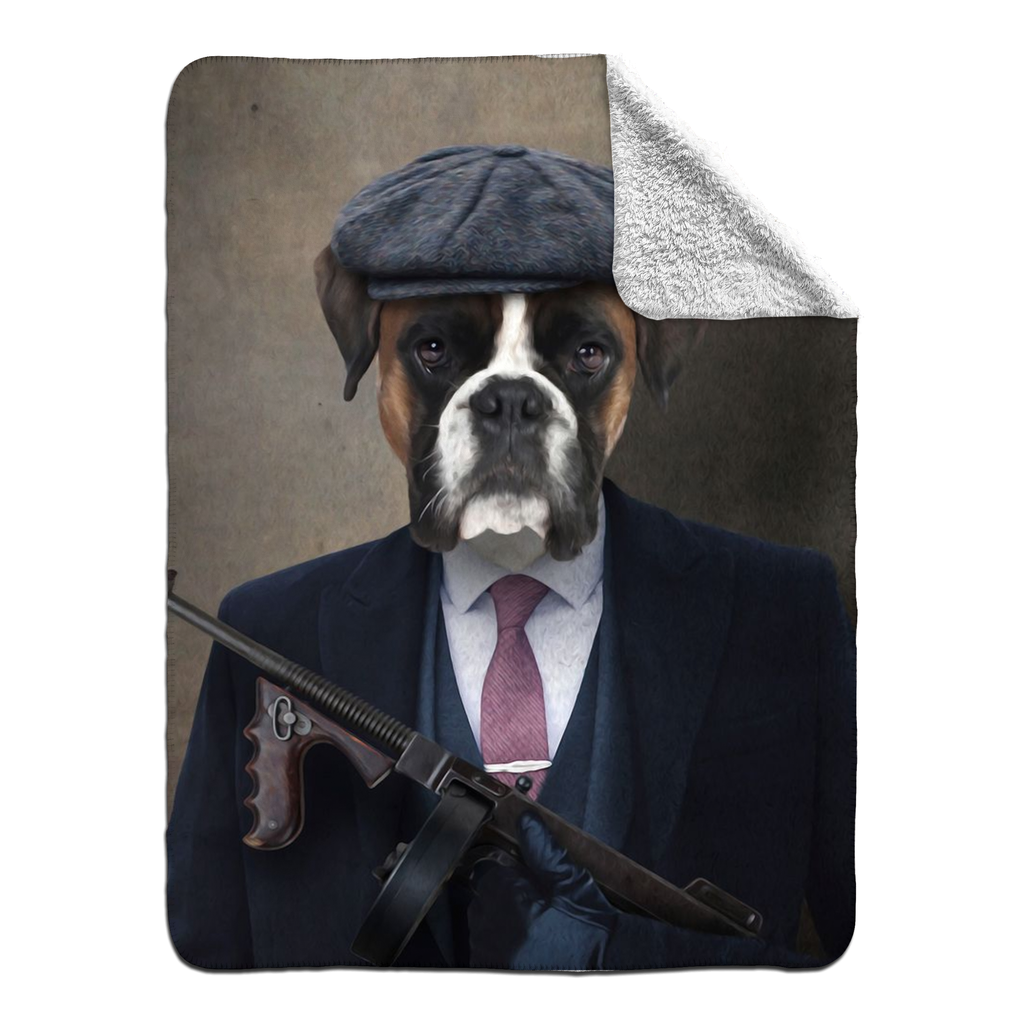This custom pet photo blanket is inspired by Peaky Blinders and gangsters.