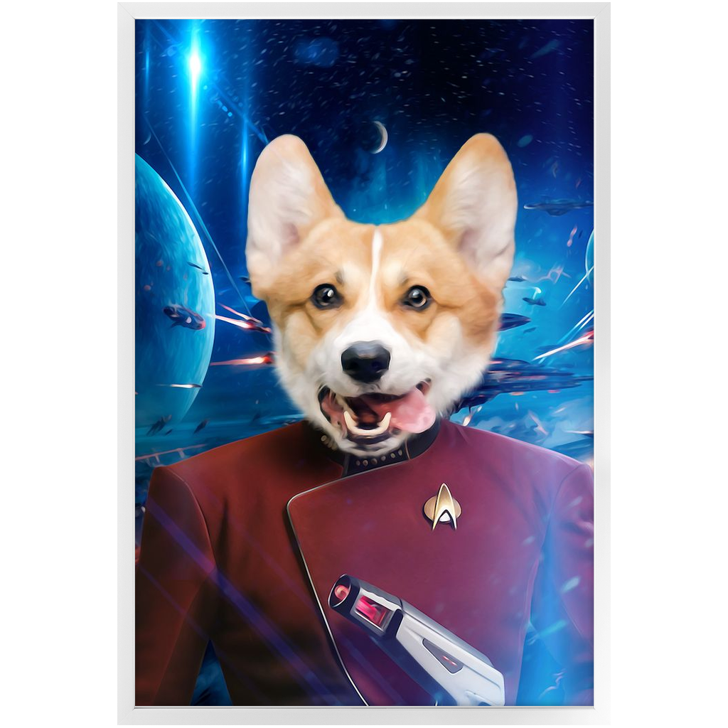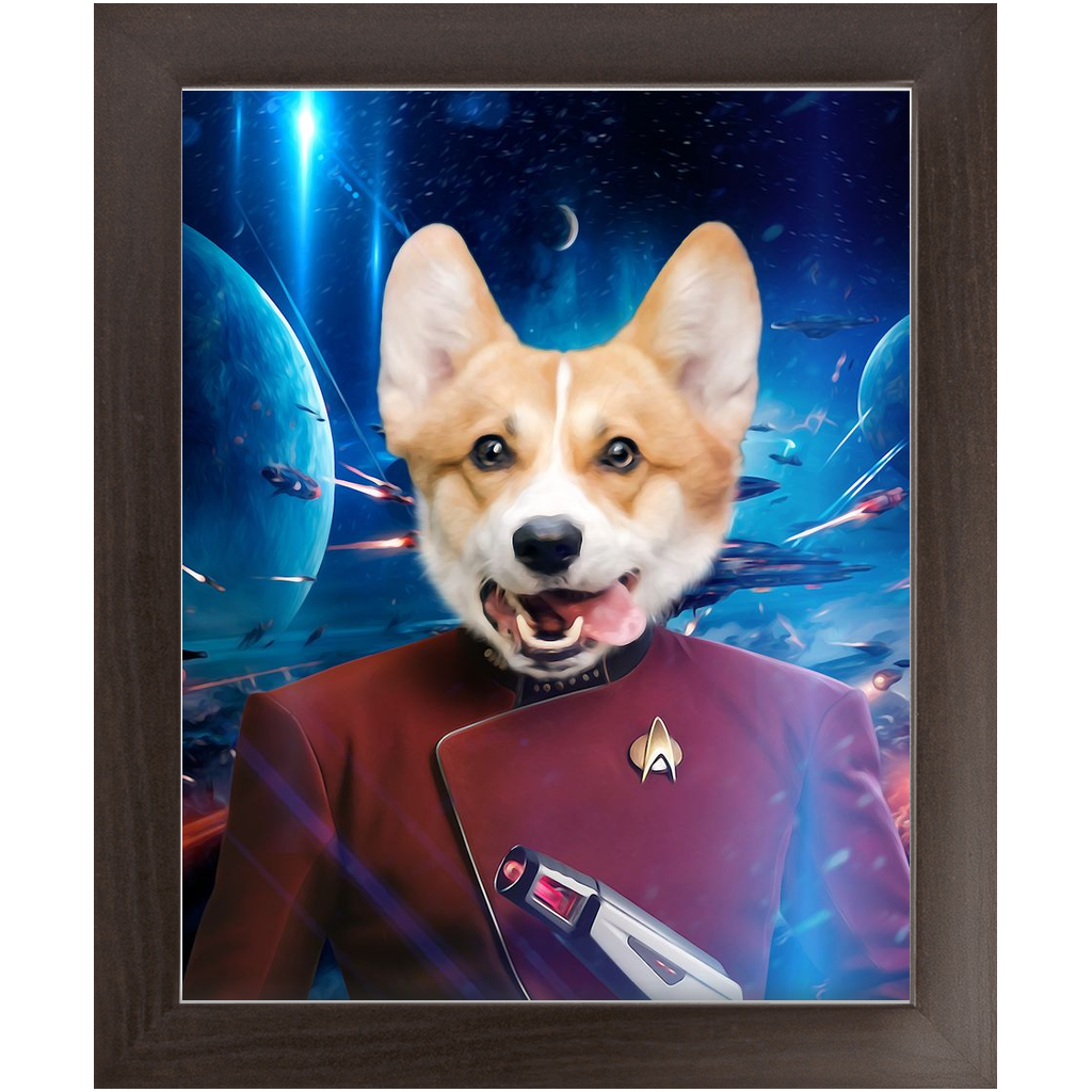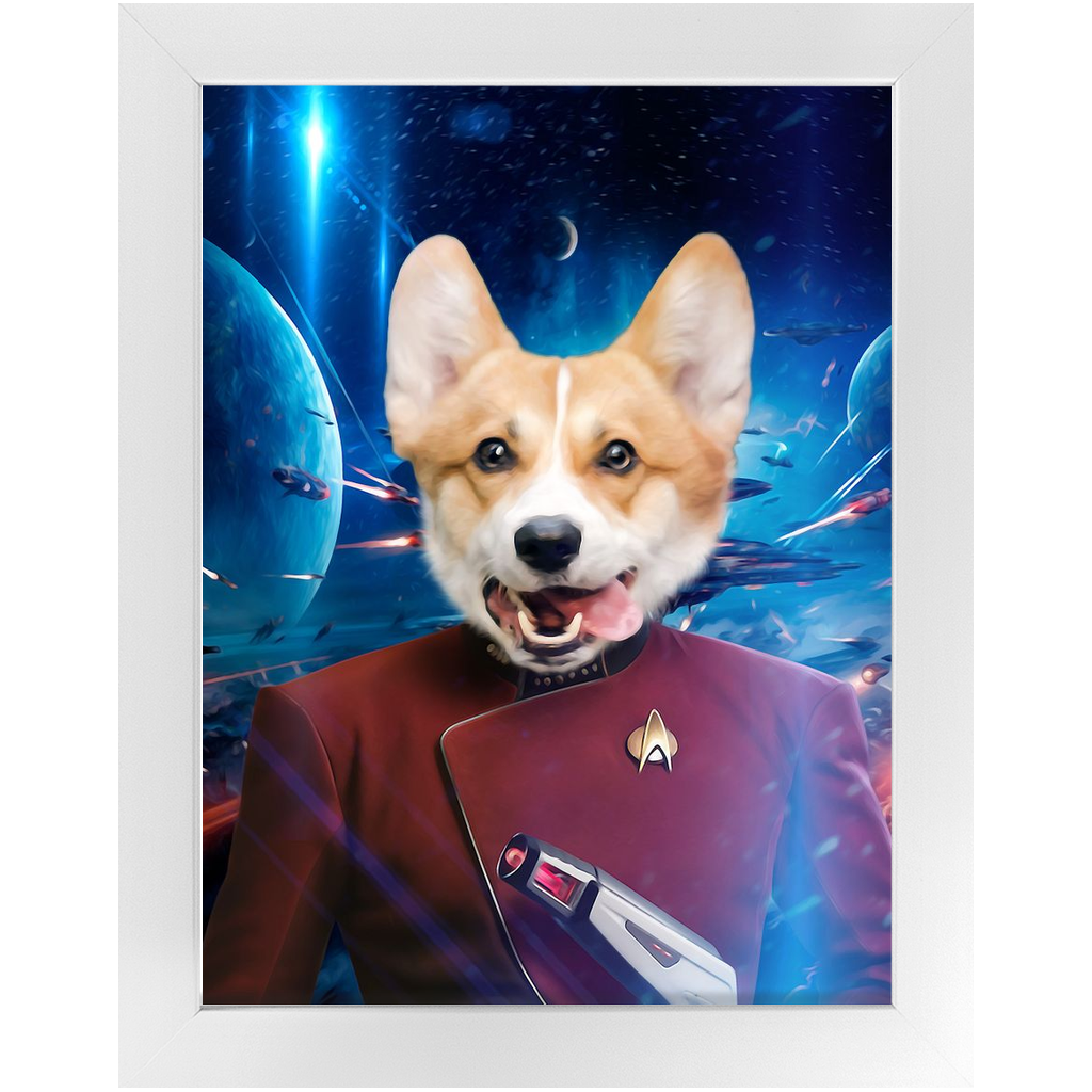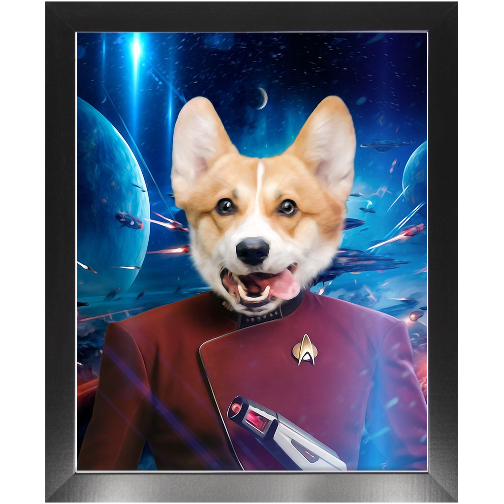 Your paw-some pet is ready for take-off in this Star Trek inspired paw-trait. As captain of the house, your furry companion loves to stay busy, always on the look-out for invaders and meat-eors. Having graduated from the Starfleet Academy, go ahead and reward them with a constellation prize of pats and cuddles.