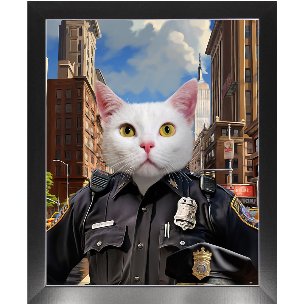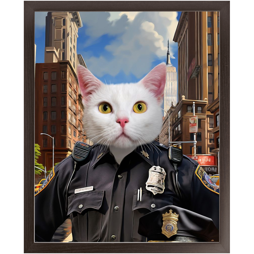ON THE BEAT - Police Uniform Inspired Custom Pet Portrait Framed Satin Paper Print