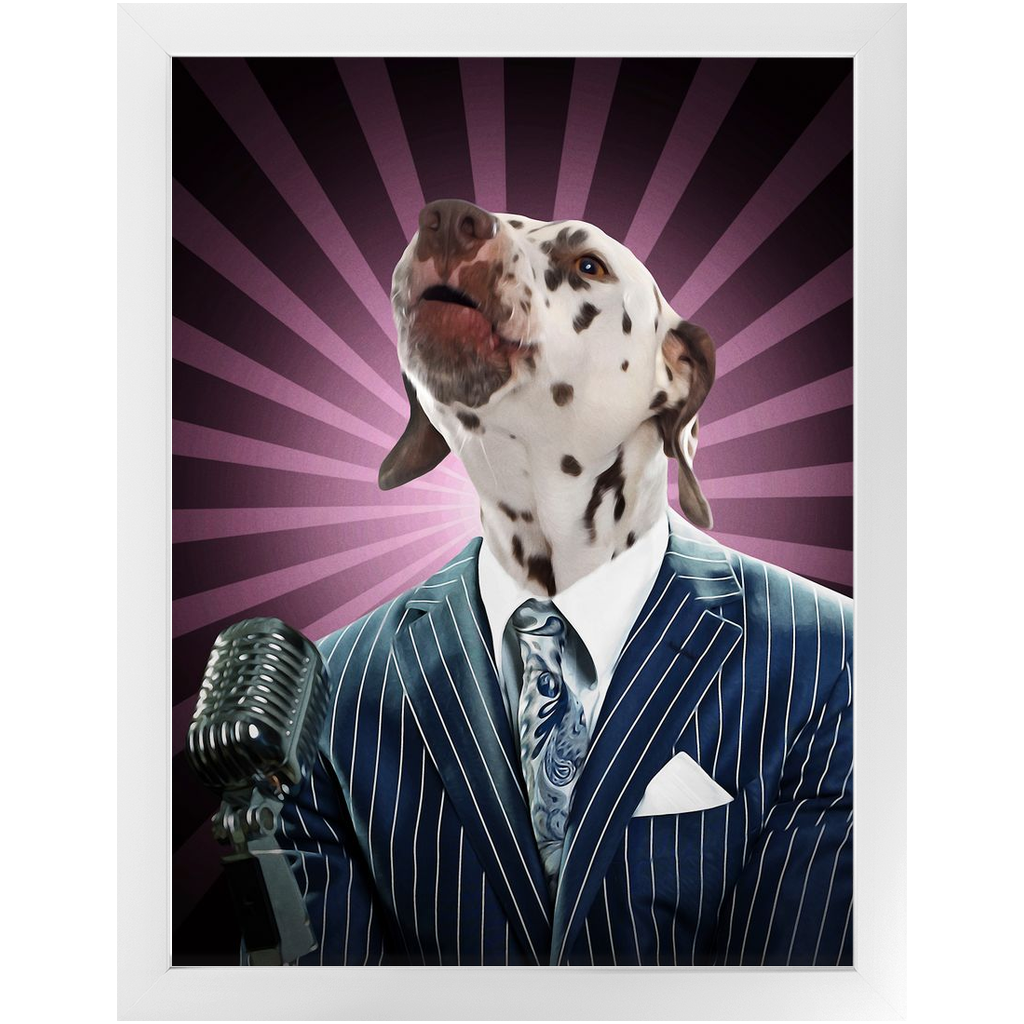 Infected with the crooner-virus, your playful pet will howl at the moon whenever you play a Sinatra ballad. With paw-fect pitch, your adorable pet will sing to your heart and their husky voice will call for a round of ap-paws. Entertaining and fun, reward your purr-fect pet with this Frank Sinatra inspired pet pawtrait.